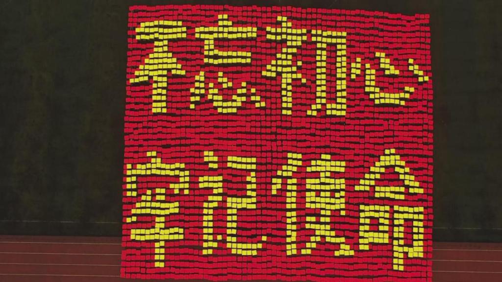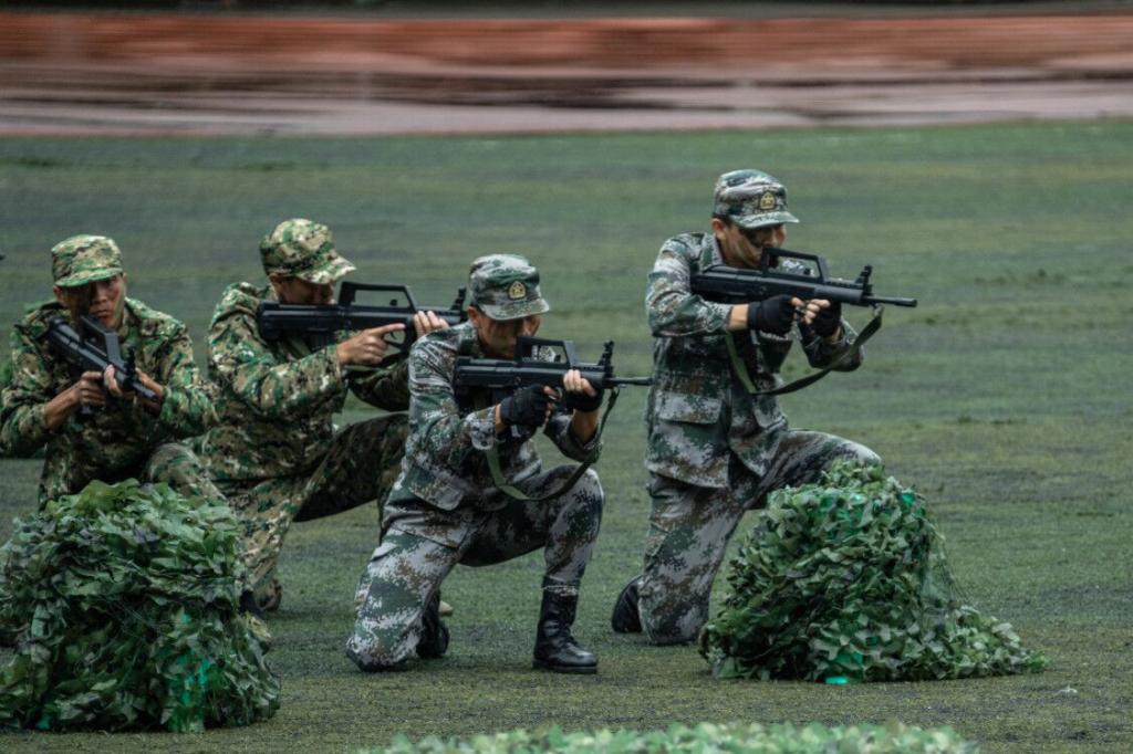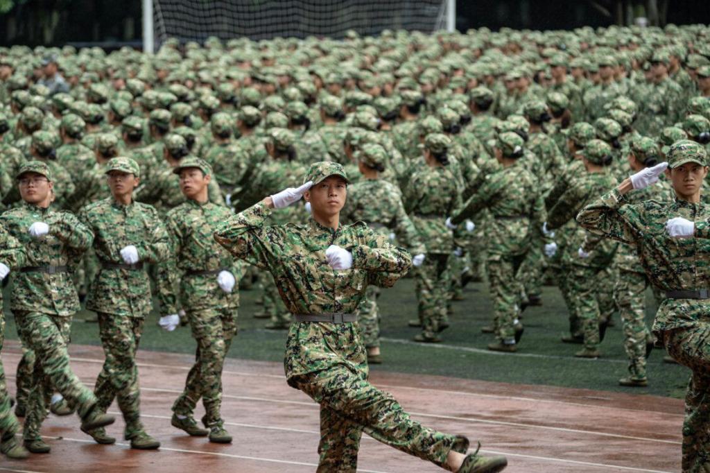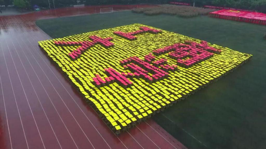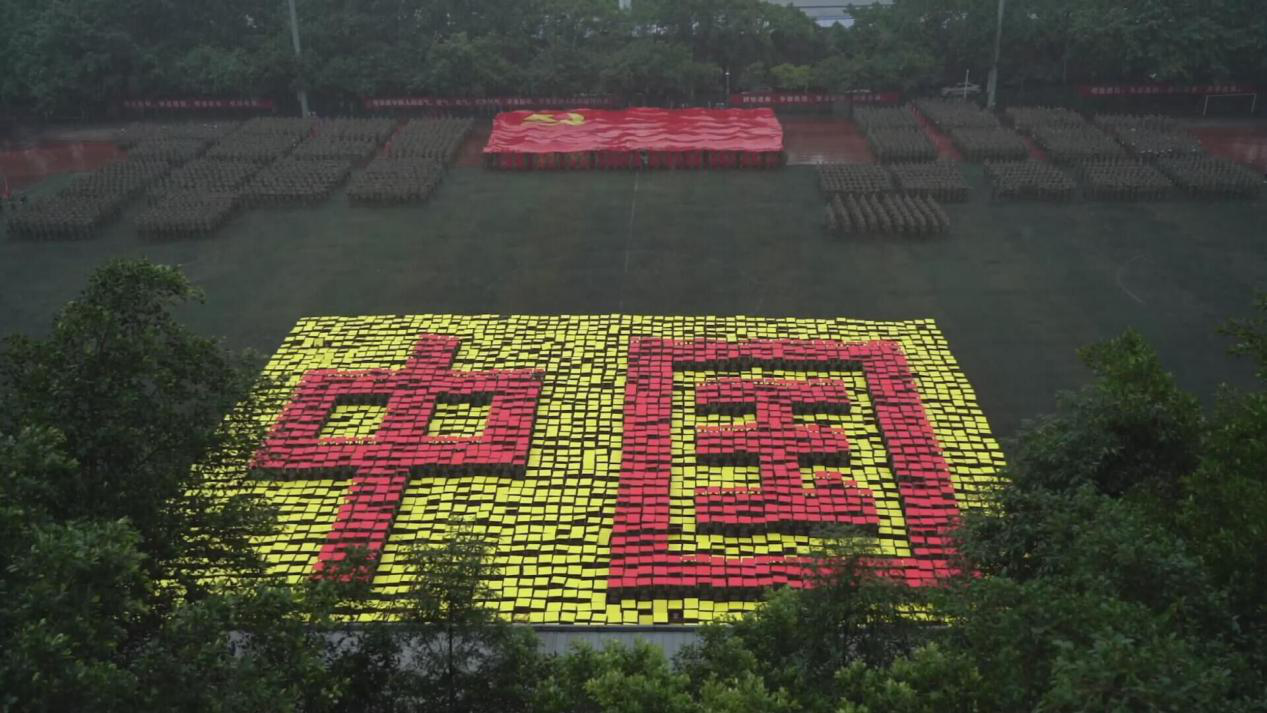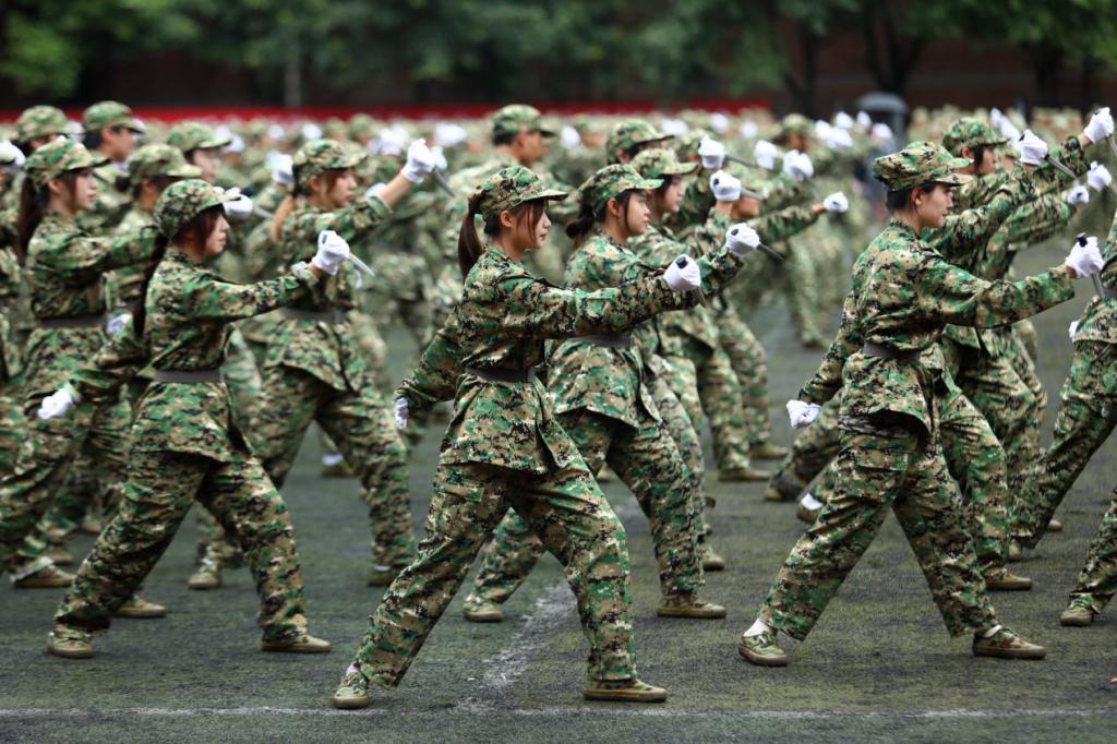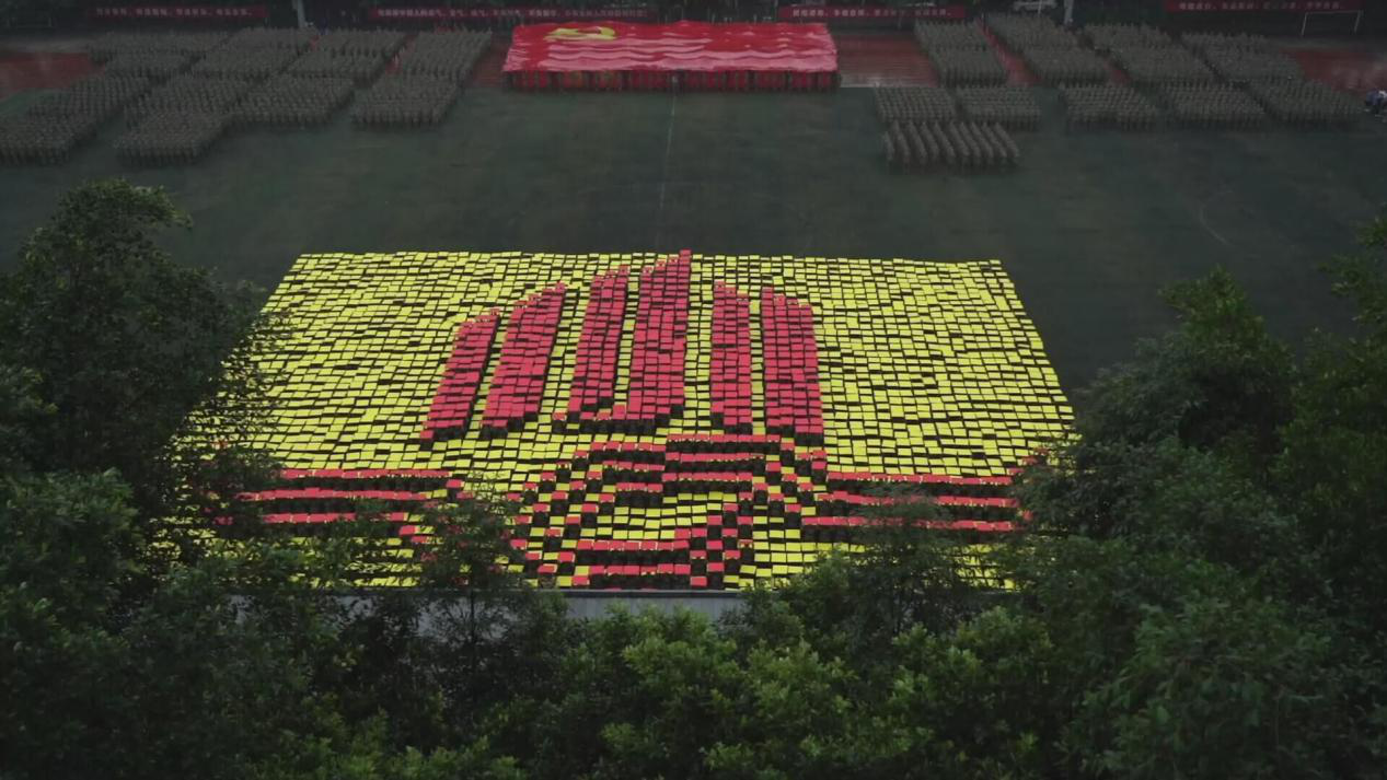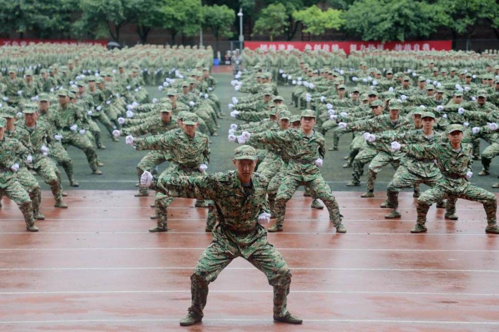 笼罩于淅淅小雨之下,分列式方阵精神饱满、昂首挺胸,齐步到正步的整齐变化体现的是队列同学的团结一心,他们以铿锵有力的步伐展示了365官网学子自信昂扬的姿态;军体拳方阵气势磅礴,雄厚的声音吼出的是男儿的铁血方刚,他们以刚劲有力的动作彰显了重工商学子锐意进取的优秀品质;匕首操方阵势如破竹、英姿飒爽,男儿的豪迈气概和女孩的英姿飒爽相交融合,他们一齐展现了新时代青年朝气蓬勃的精神面貌。由退伍学生与体育学院健儿们组成的战术方阵用专业精彩、扣人心弦的表演描述了边防官兵保家卫国、不怕牺牲的英雄气概。复兴方阵以整齐划一的步伐迈向主席台,伴随着指挥员的解说词与大气恢弘的背景乐,2800名女生用红黄底板准确地摆出“1921”“2021”“红船”“天安门”“长城”“CTBU”“工商大学”“校徽”等图案,表达了对祖国大好河山的热爱之情,以及不忘初心跟党前行的坚定信念,当复兴方阵即将摆出“巨轮”图案之时,天空陡然降下瓢泼大雨,似印证其“长风破浪会有时,直挂云帆济沧海”的伟大理想。在党旗方阵的带领下,全体参训人员进行宣誓。