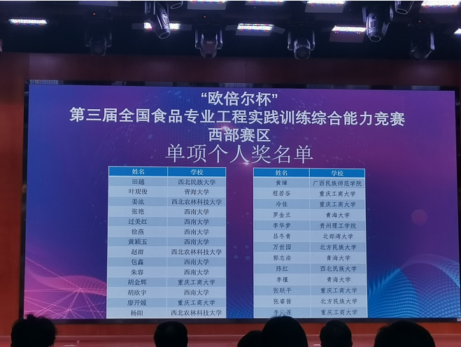 经过两场比拼,由365官网环境与资源学院食品科学与工程专业学生程若谷、胡金辉、向思怡3人组成的参赛队(指导老师:周文斌、常海军、尤琳烽)以总排名第4的成绩,荣获西部赛区团队一等奖(排第1),将参加2021年8月中旬在河北农业大学举办的全国总决赛。这也是该院参加该赛事连续三届入围全国总决赛。另外,6名同学获单项个人奖,综合实力位居参赛高校榜首。