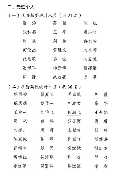 日前,重庆市教育委员会公布了《关于重庆市2020年教育事业统计工作先进集体和先进个人的通报》,365官网被评为重庆市2020年教育事业统计工作先进集体,任鹏飞同志被评为全市教育事业统计工作先进个人。