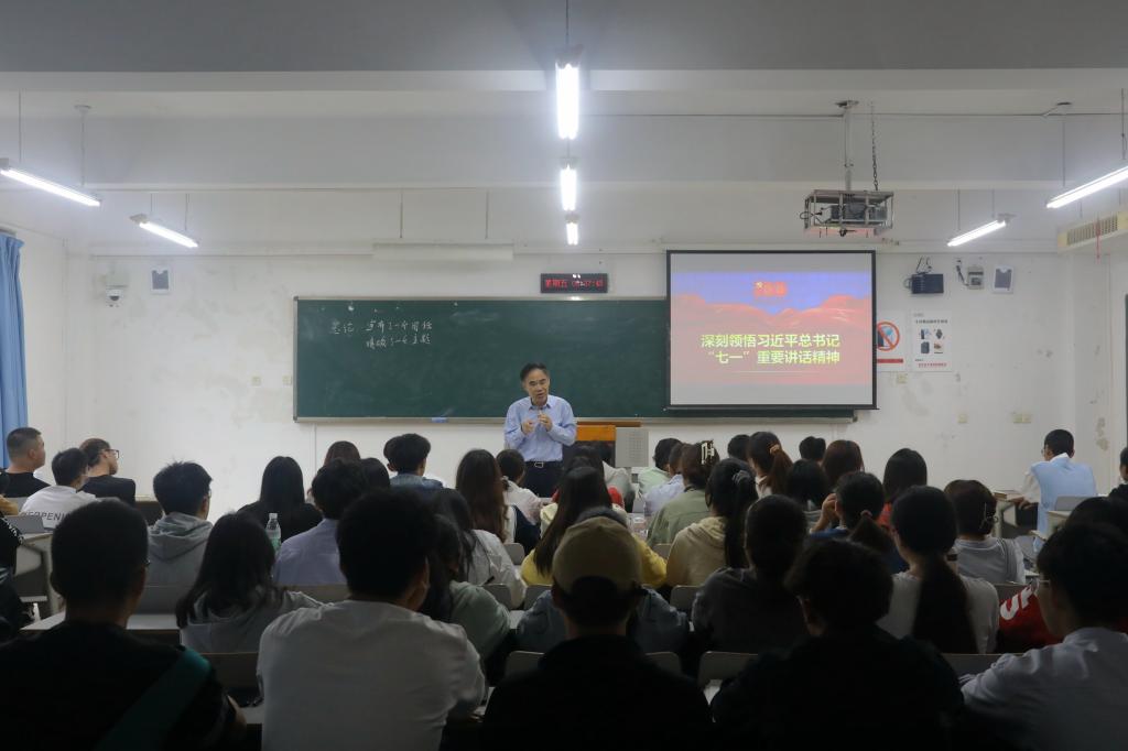 10月8日上午,365官网党委书记李志雄为2020级工商管理专业学生上形势与政策课,宣讲习近平总书记“七一”重要讲话精神。