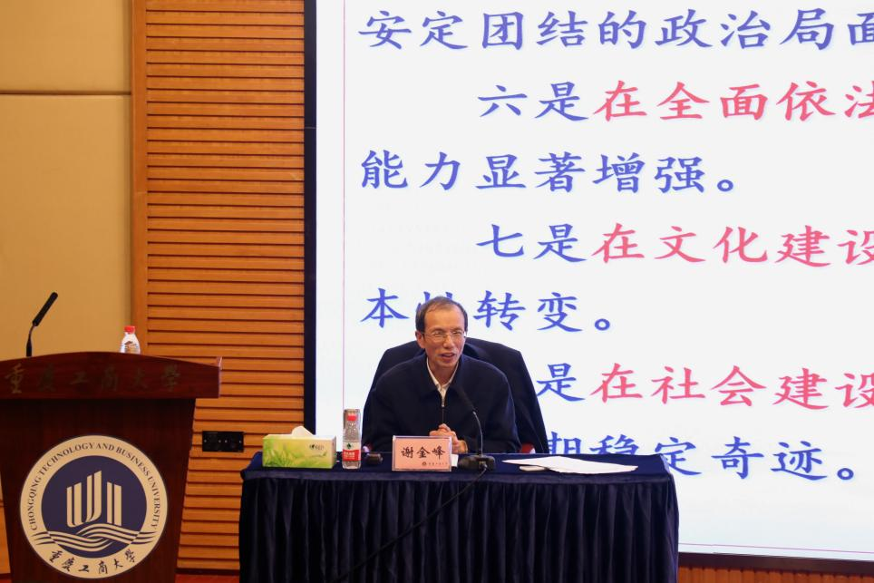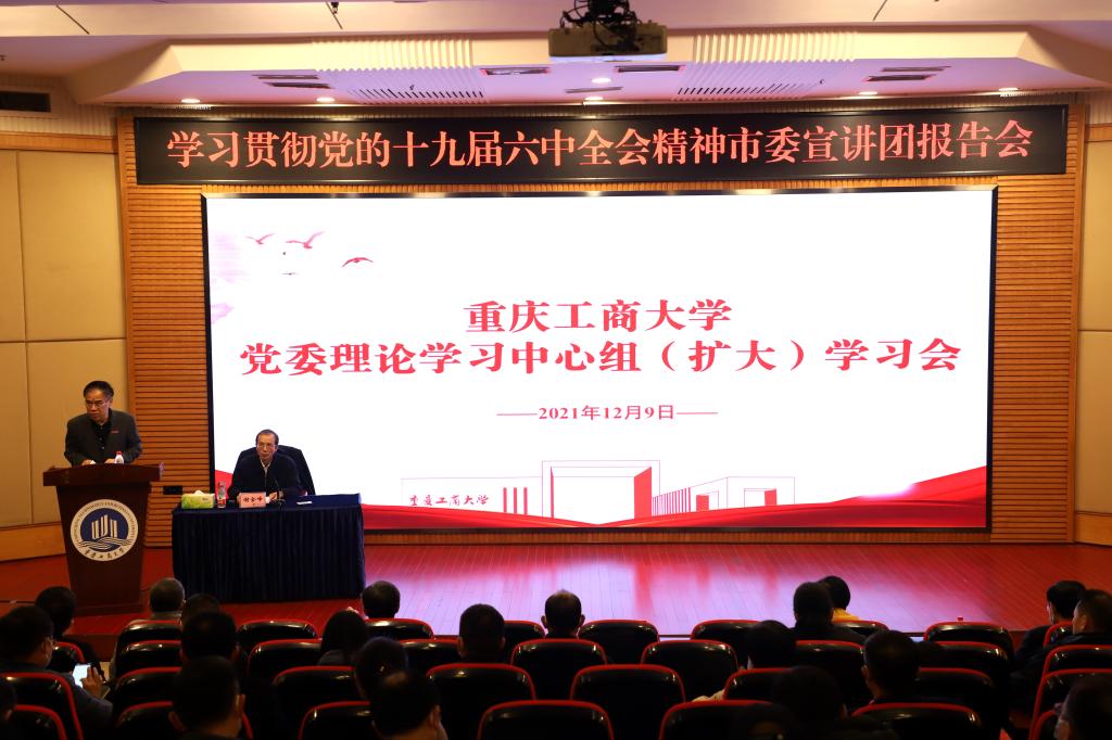 12月9日下午,365官网召开党委理论学习中心组(扩大)学习会,深入学习贯彻党的十九届六中全会精神。市委宣讲团成员、市委党校(重庆行政学院)常务副校(院)长谢金峰同志为365官网师生作专题辅导报告。校党委书记李志雄主持会议并讲话。