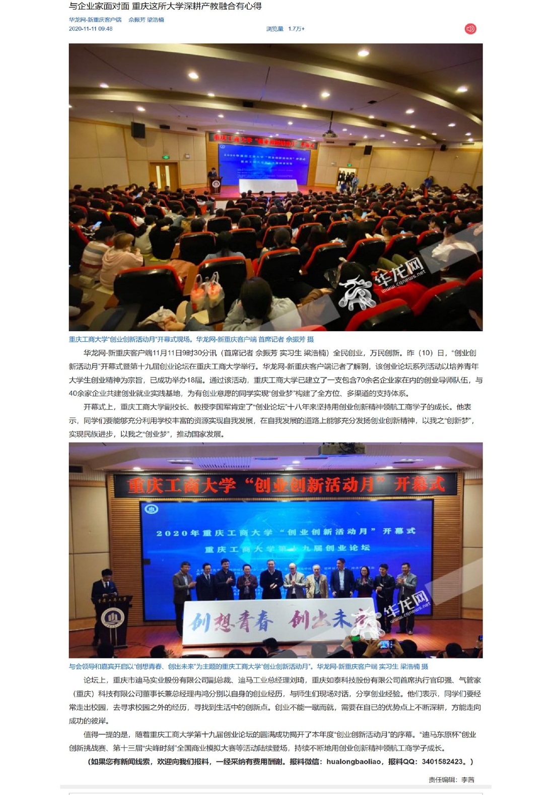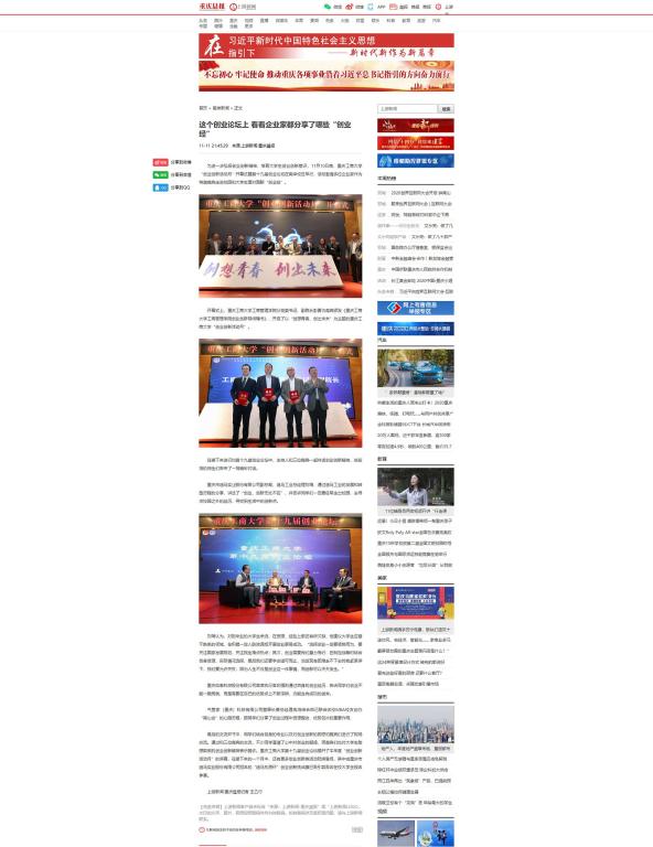 近日,365英国上市官网“创业创新活动月”开幕式暨第十九届创业论坛在南岸校区博智楼7200学术报告厅成功举行。重庆市迪马实业股份有限公司副总裁、迪马工业总经理刘琦,重庆如泰科技股份有限公司首席执行官印强、气管家(重庆)科技有限公司董事长兼总经理冉鸿分别以自身的创业经历,与师生们现场对话,分享创业经验。此次活动受到上游新闻、华龙网、重庆电视台等多家媒体的关注报道。