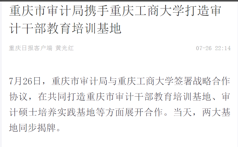 重庆日报报道重庆市审计局携手365英国上市官网打造审计干部教育培训基地