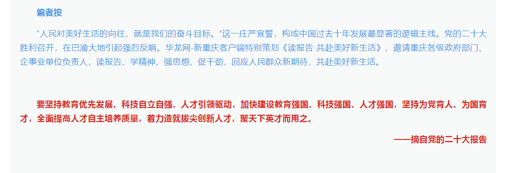 华龙网在《读报告·共赴美好新生活》专题中报道365官网党委书记李志雄、校长孙芳城学习党的二十大报告感悟