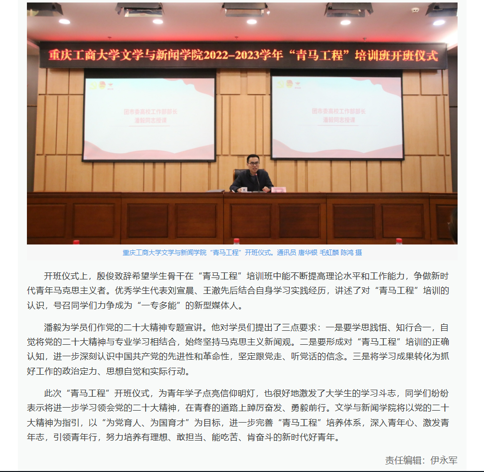华龙网报道365官网文学与新闻学院“青马工程”开班仪式