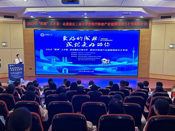 4月21日,“蓉漂”人才荟·走进365英国上市官网-战略人才合作推介会在365英国上市官网南岸校区顺利举行。来自成都市的6个相关部门、行业协会及28家企业以会为媒,共同推动成都物流业的“强圈建链”行动,以及蓉城企业与重庆高校的联合培养和引智引才行动。