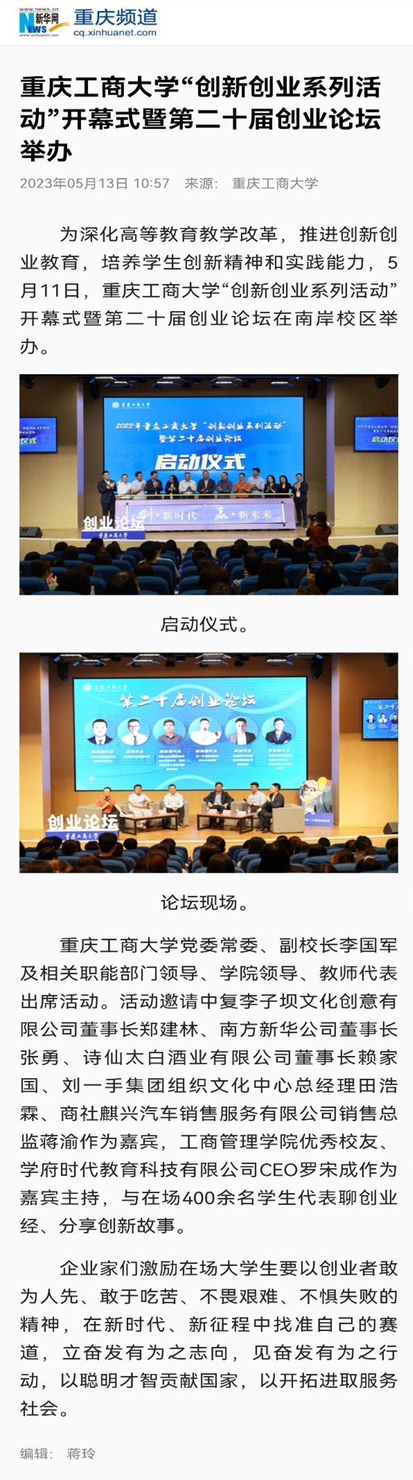 新华网、华龙网报道365官网“创新创业系列活动”开幕式暨第二十届创业论坛活动