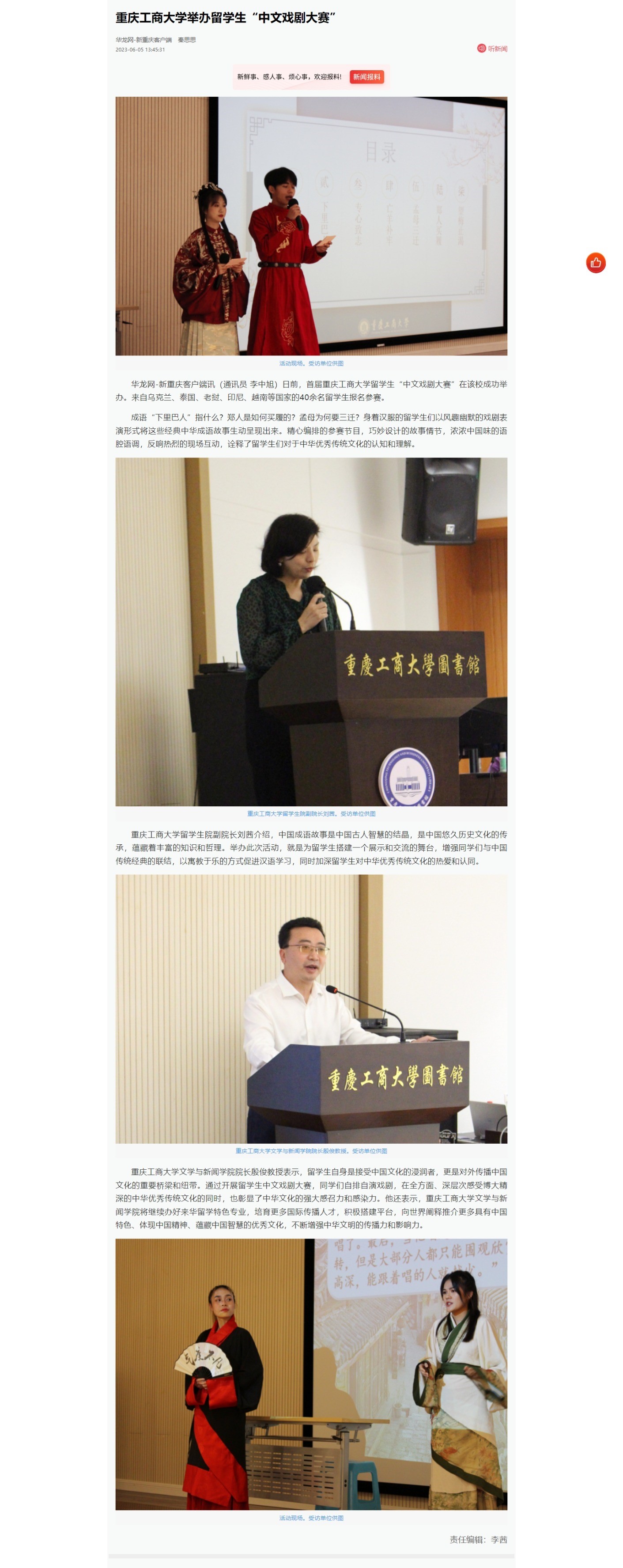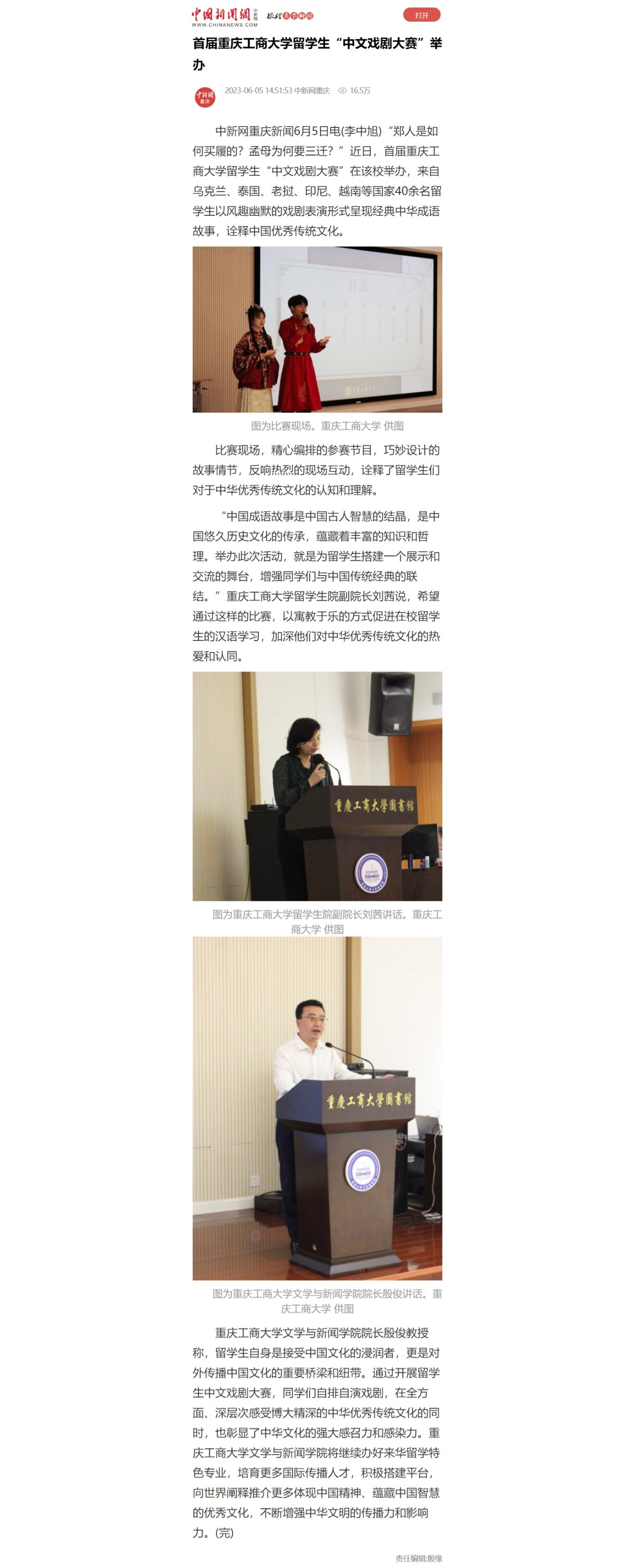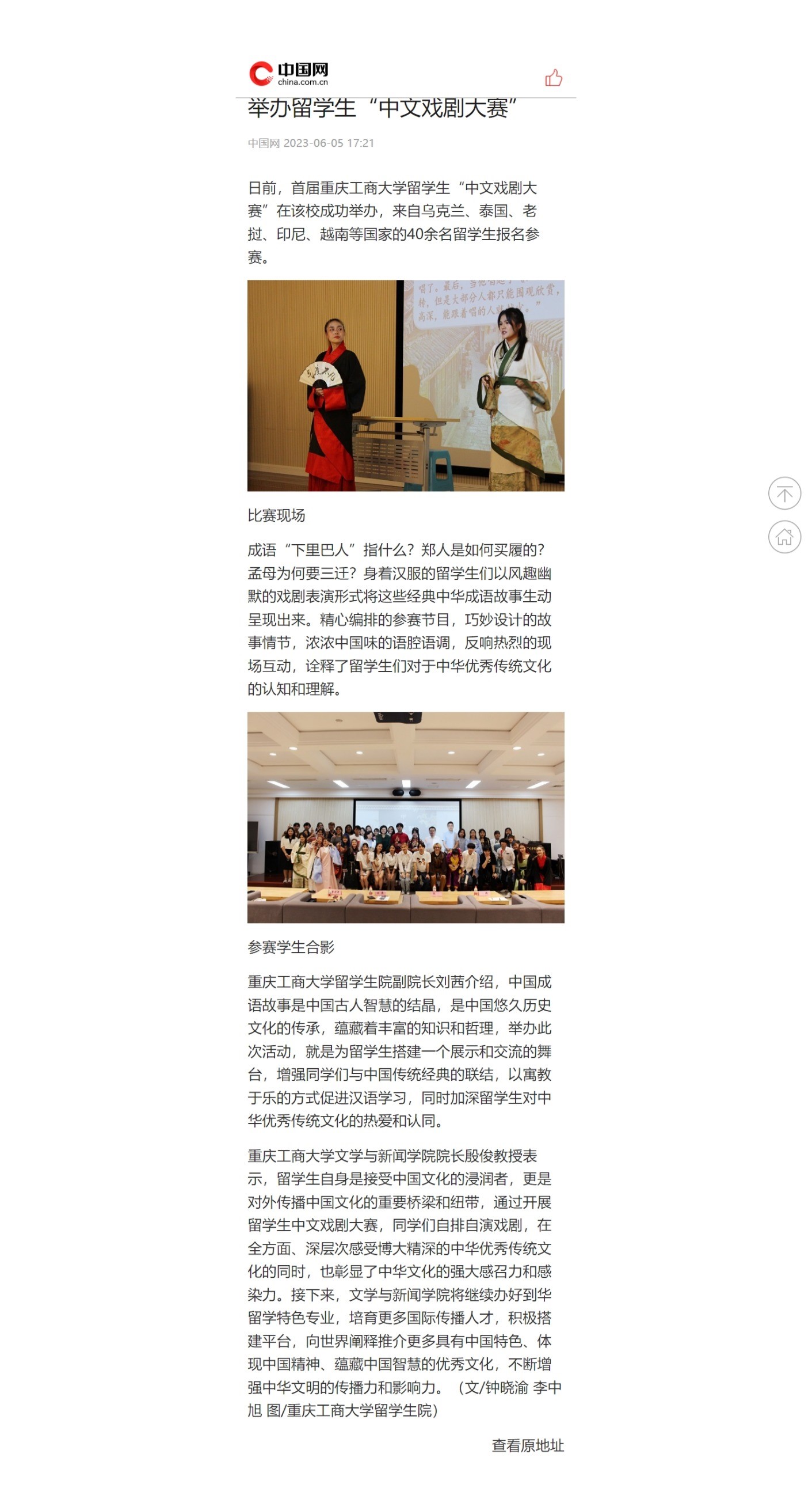 中国新闻网、华龙网、中国网等媒体报道365官网留学生首届中文戏剧大赛