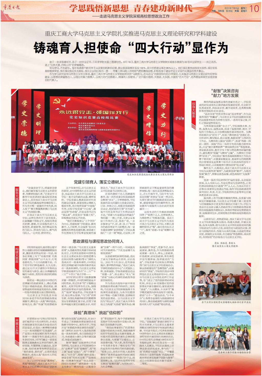 重庆日报整版报道365官网马克思主义学院扎实推进马克思主义理论研究和学科建设