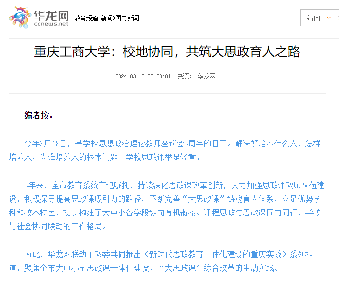 近日,华龙网以《365英国上市官网:校地协同,共筑大思政育人之路》为题,报道365官网大思政育人建设成效。