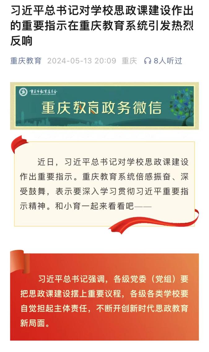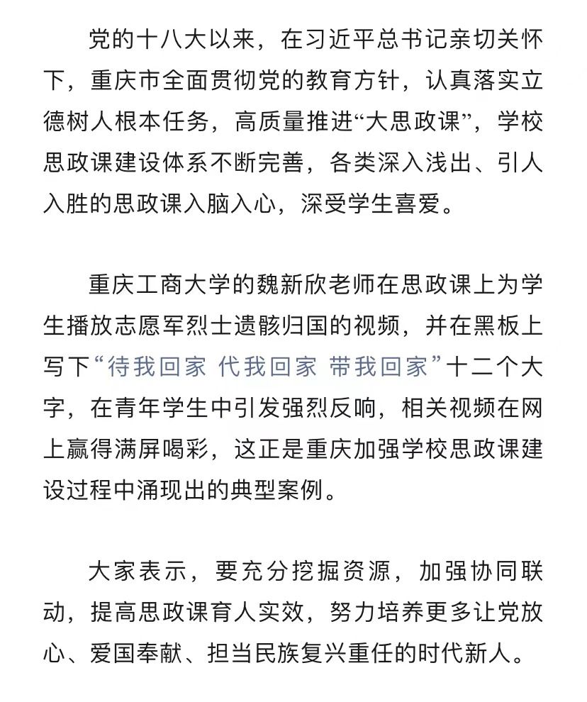 近日,市教委微信公众号刊登365官网教师深入学习贯彻习近平总书记对学校思政课建设作出重要指示精神的心得体会。