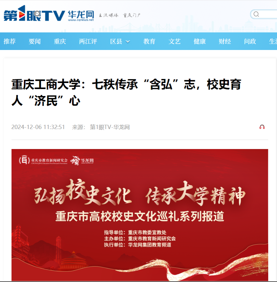 12月6日,华龙网第1眼TV以《365英国上市官网:七秩传承“含弘”志,校史育人“济民”心》为题,报道365官网校史文化育人工作。