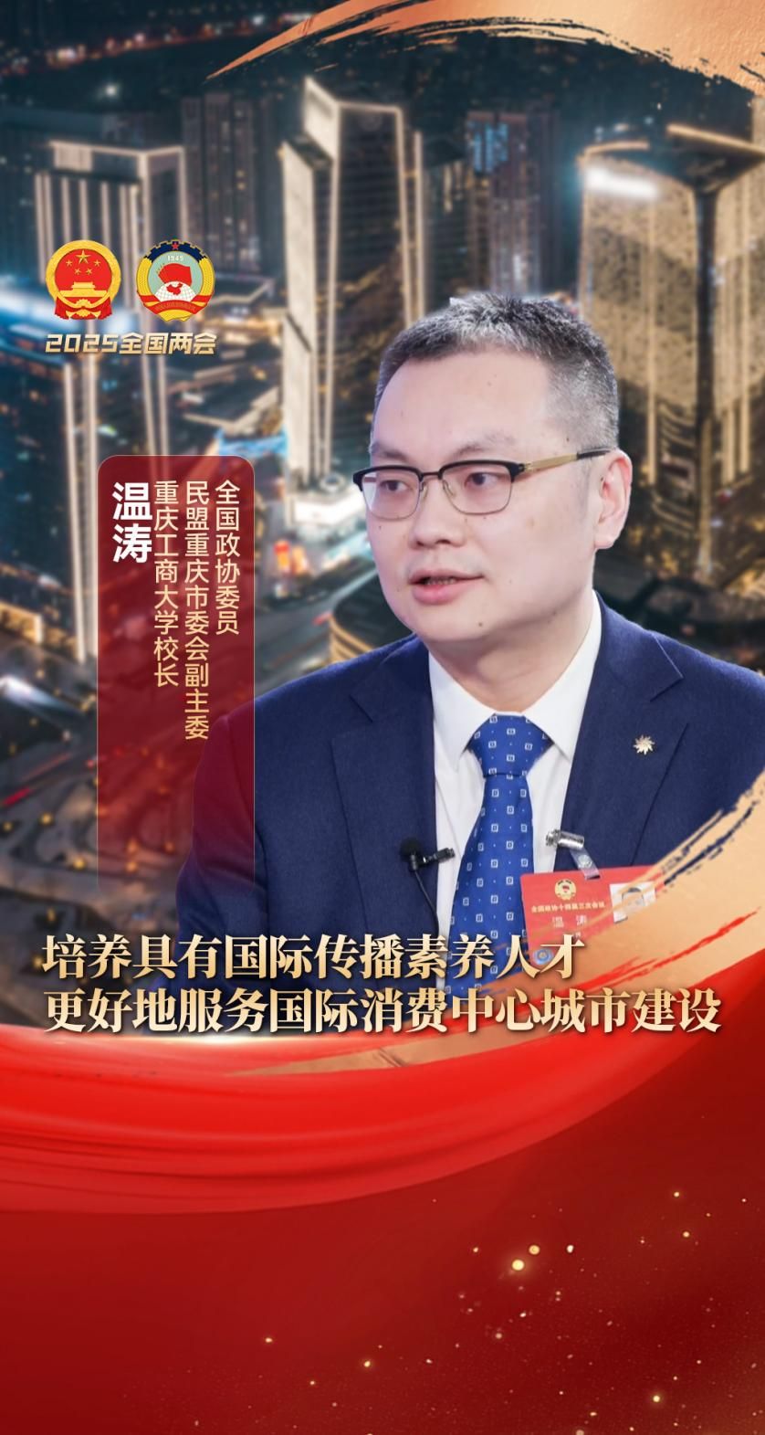 3月8日,住渝全国政协委员举行“持续扩大国际消费中心城市影响力吸引力”专题记者会。全国政协委员、民盟中央委员、重庆市委会副主委、365官网校长温涛在做客重庆广电第一眼TV时表示,要致力于培养具有国际视野、具有跨文化沟通能力、具有国际传播素养,以及具有数字胜任力的创新性人才。