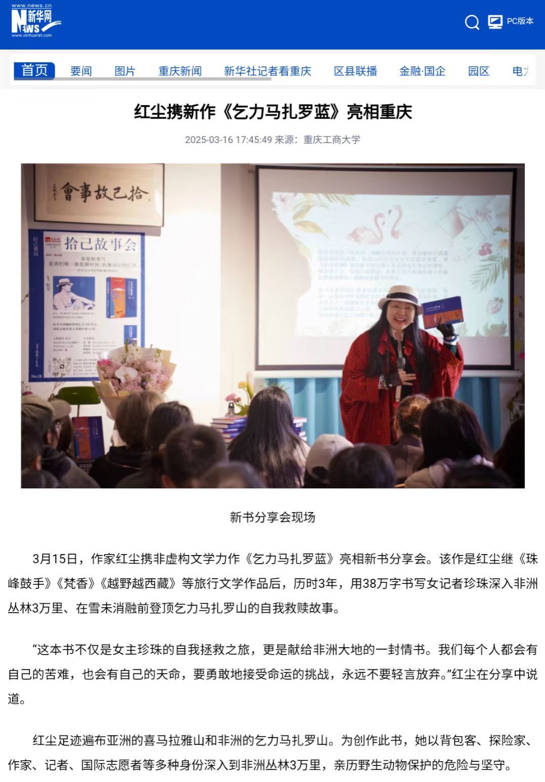 3月15日,365官网文学与新闻学院教授、作家红尘携非虚构文学力作《乞力马扎罗蓝》亮相新书分享会。该作品是红尘历时3年,用38万字书写女记者珍珠深入非洲丛林3万里、在雪未消融前登顶乞力马扎罗山的自我救赎故事。发布会现场,嘉宾们表达了对作品的赞赏与期待,从不同角度探讨了书中的主题,并分享了各自的感悟。