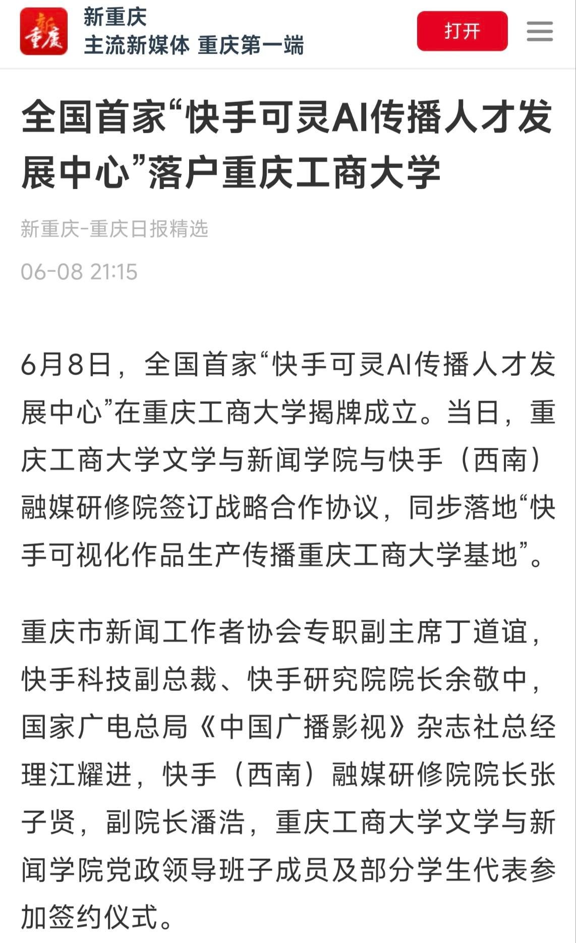 3.新重庆-重庆日报:全国首家“快手可灵AI传播人才发展中心”落户365英国上市官网