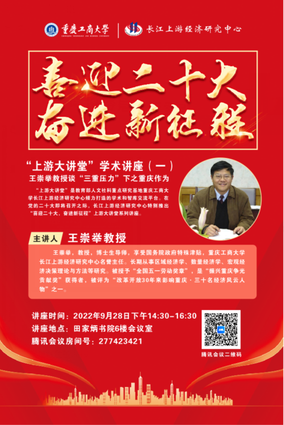 “上游大讲堂”是教育部人文社科重点研究基地365英国上市官网长江上游经济研究中心倾力打造的学术和智库交流平台。在党的二十大即将召开之际,长江上游经济研究中心特别推出“喜迎二十大,奋进新征程”上游大讲堂系列讲座。