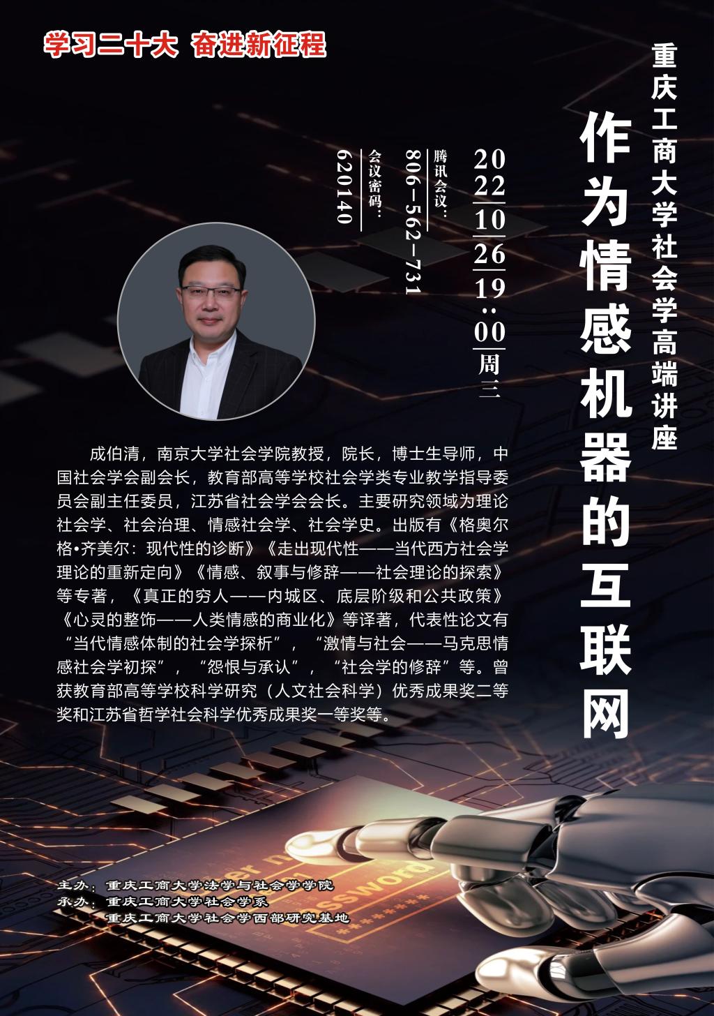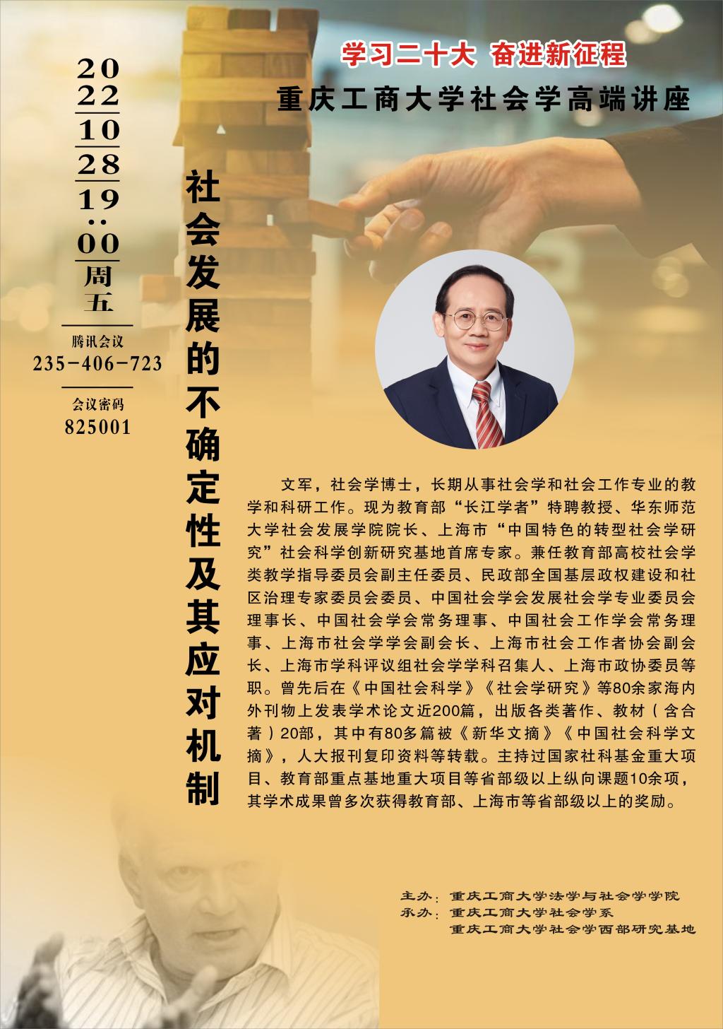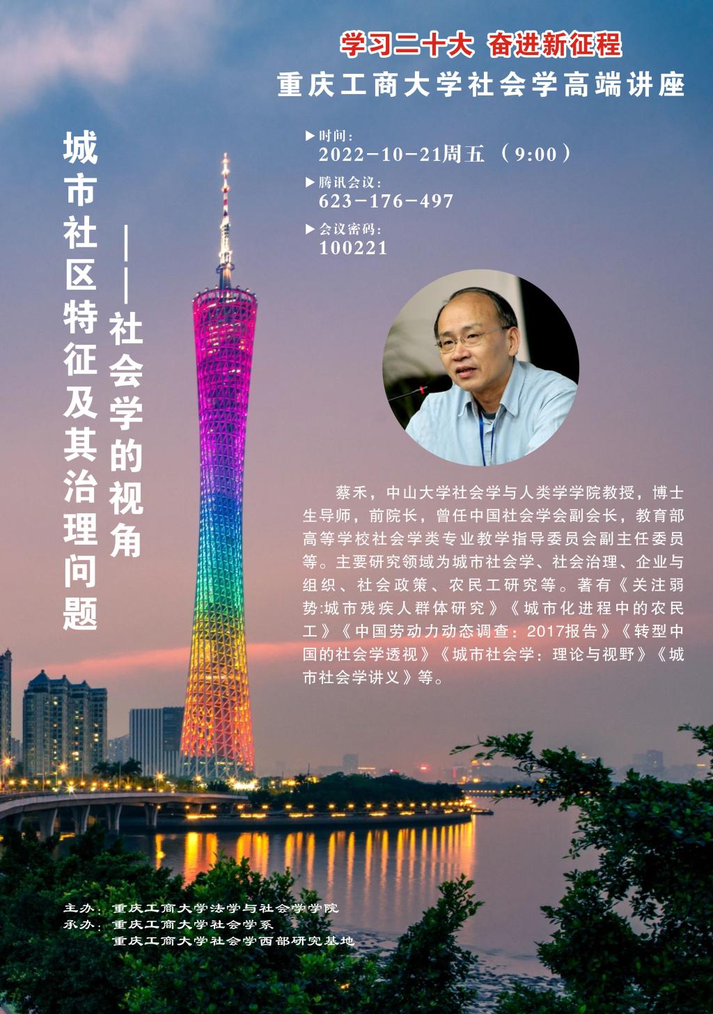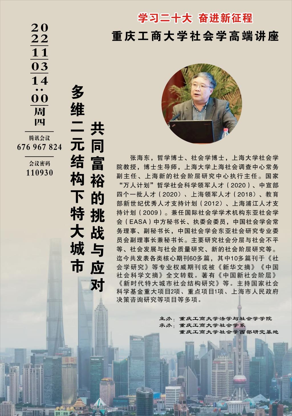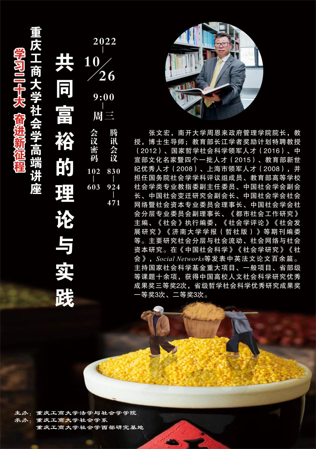 学习二十大,奋进新征程。 为推动365英国上市官网社会学重庆市“十四五”重点学科及一流专业建设,365英国上市官网社会学系、365英国上市官网社会学西部研究基地特举办社会学系列论坛。论坛为期一个月(2022.10.20-11.20),共计10场。论坛负责人:罗兆均(邮箱:545319529@qq.com)。具体安排如下: