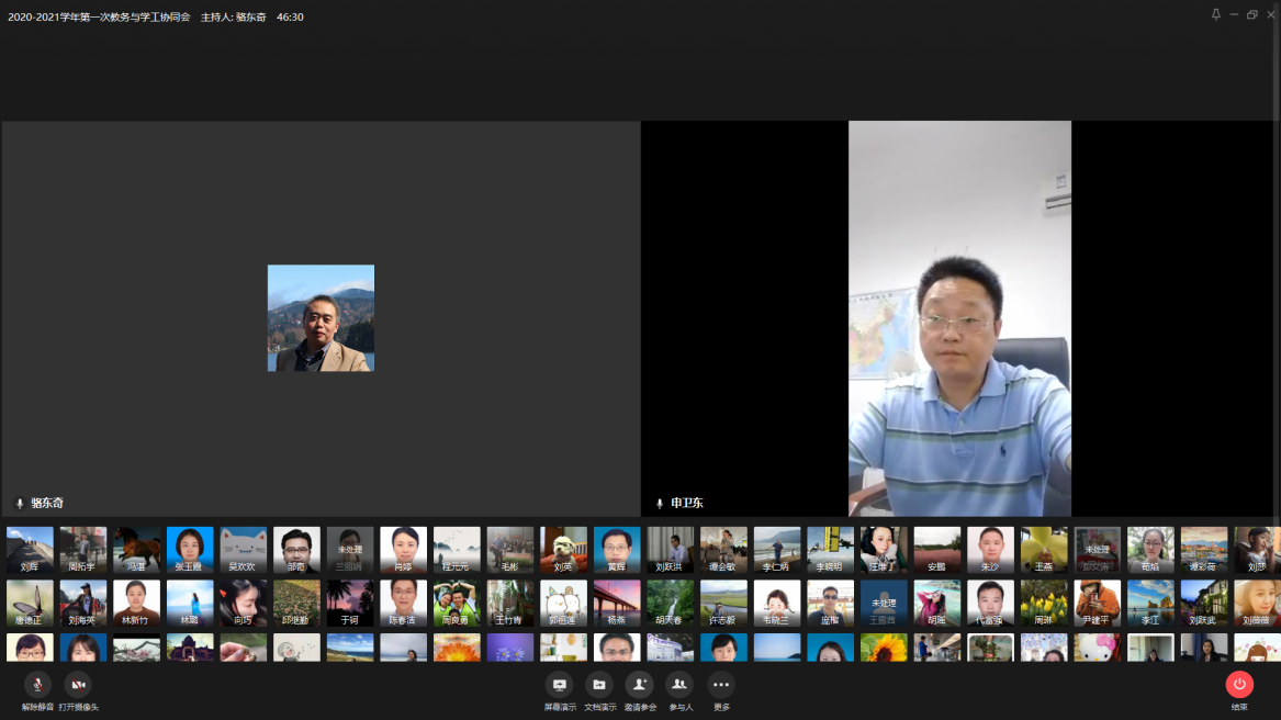 教务处副处长宋瑛从学生考试安排、监考教师、教室安排、考试试卷、巡考、成绩评定、不返校学生的延期考试等全方面对开学考试(延期考试)工作做了布置。教务处副处长胡卫军就本次开学考试的成绩登录提了具体要求。