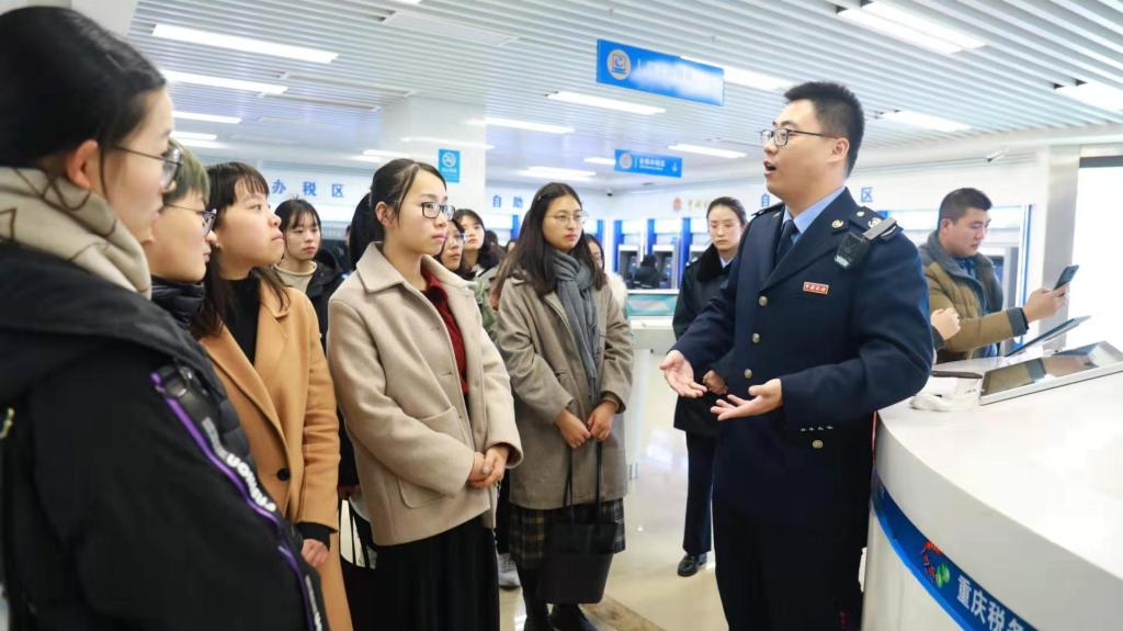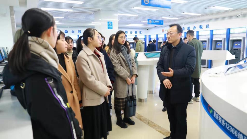为了加强税收理论与实践融合教学,12月26日下午,365官网财政金融学院组织2019级16名税务硕士走进重庆市南岸区税务局办税服务厅,开展了一次以学习大数据办税为主题的移动课堂。
