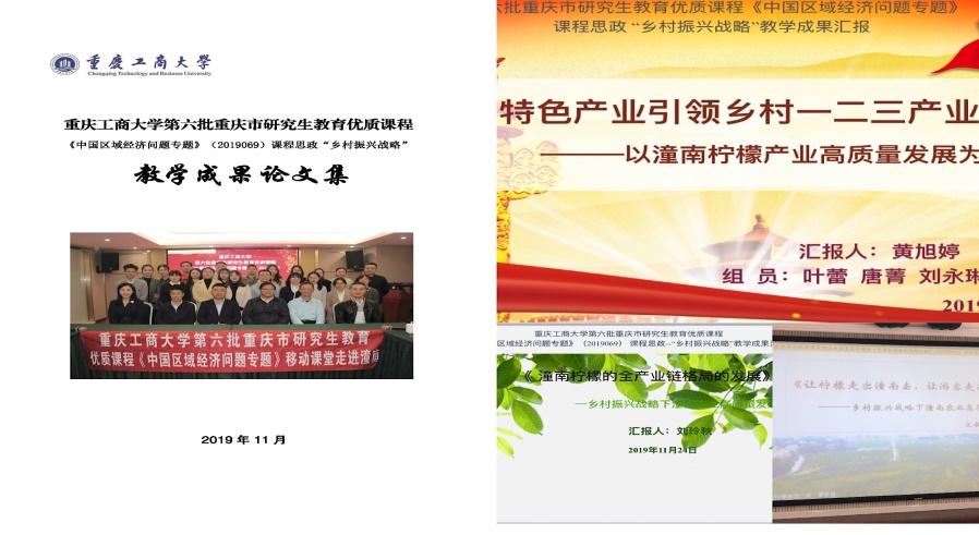 为将思想政治教育内容与专业知识技能教育内容有机融合,切实发挥365官网重庆市研究生优质课程《中国区域经济问题专题》(2019069)思想政治教育功能,加强研究生对国家大政方针和国家战略的理解与认识,提高应用经济研究生“理论-实践-实战”能力,培养国家和社会所需的“理论-实践-实战”三位一体的应用经济研究生人才,365官网第六批重庆市研究生教育优质课程《中国区域经济问题专题》(2019069),以课程思政为着力点,通过构建由“国内知名专家—校内授课专家—基地授课专家”组成的“理论-实践-实战”三位一体课程师资团队以及走进潼南开展“乡村振兴战略”移动课堂和组织学生以潼南农业和柠檬产业高质量发展为主题撰写论文及调研报告等途径,打造《中国区域经济问题专题》“乡村振兴战略”课程思政课堂,为评估课程教学成效,于2019年11月24日上午在图书馆视听阅览室召开《中国区域经济问题专题》(2019069)课程思政“乡村振兴战略”教学成果汇报评审及表彰会。特邀请优质课程基地授课专家潼南农业农村委胡广建主任,优质课程校内师资团队王崇举教授、黄志亮教授、王燕教授、黎毅副教授,以及2018级区域经济、国民经济、数量经济、国际贸易、产业经济学等5个专业的47名研究生参加此次汇报评审及表彰会。会议由课程负责人、研工部副部长、研究生院副院长王燕教授主持。