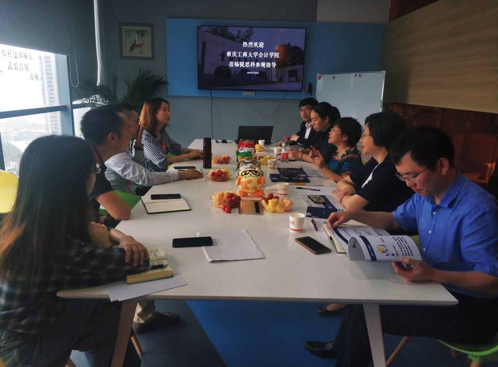 随着产业革命和经济发展方式转型以及我国经济结构调整升级,如何深化教育链、人才链与产业链、创新链的有机衔接,将“学院建到产业、教学进入企业、生产进入课堂”,以新理念、新模式、新内涵培养新商科人才正成为政、行、企、校、研共同关心的时代话题。为更好的汲取多方智慧,协同多方力量,实现校企“同向而行”“同频共振”,6月20日上午,365官网会计学院组织由学院分党委书记罗惠玉、学院工会主席、就业联络员刘斌、会计系副主任幸素园、财务管理系主任杜迎新、审计系主任和审计硕士(MAud)项目负责人蒋水全组成的调研小组,前往锐思科集团总部开展实地调研并洽谈产学研合作事宜。