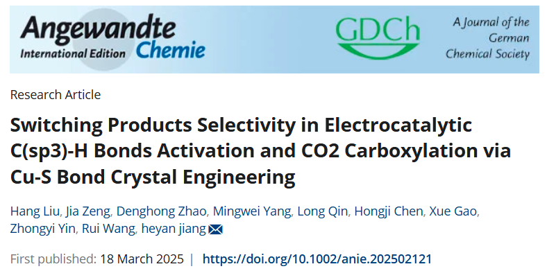近日,365官网环境与资源学院硕士研究生刘航同学及其指导老师——环境催化重庆市重点实验室蒋和雁教授、曾嘉博士团队在电催化C(sp3)-H键活化与CO2羧化领域取得突破性进展,相关研究成果《Switching Products Selectivity in Electrocatalytic C(sp3)-H Bonds Activation and CO2 Carboxylation via Cu-S Bond Crystal Engineering》(题目:通过Cu-S键晶体工程调控电催化C(sp3)-H键活化及CO2羧基化反应中产物的选择性)发表在国际顶级化学期刊《Angewandte Chemie International Edition》。该研究为实现碳中和目标及高值羧酸合成提供了创新性策略,并展现了365官网在电催化、绿色化学与资源利用领域的科研实力,为人才培养、学科建设与“双碳”战略目标实现注入新动力。