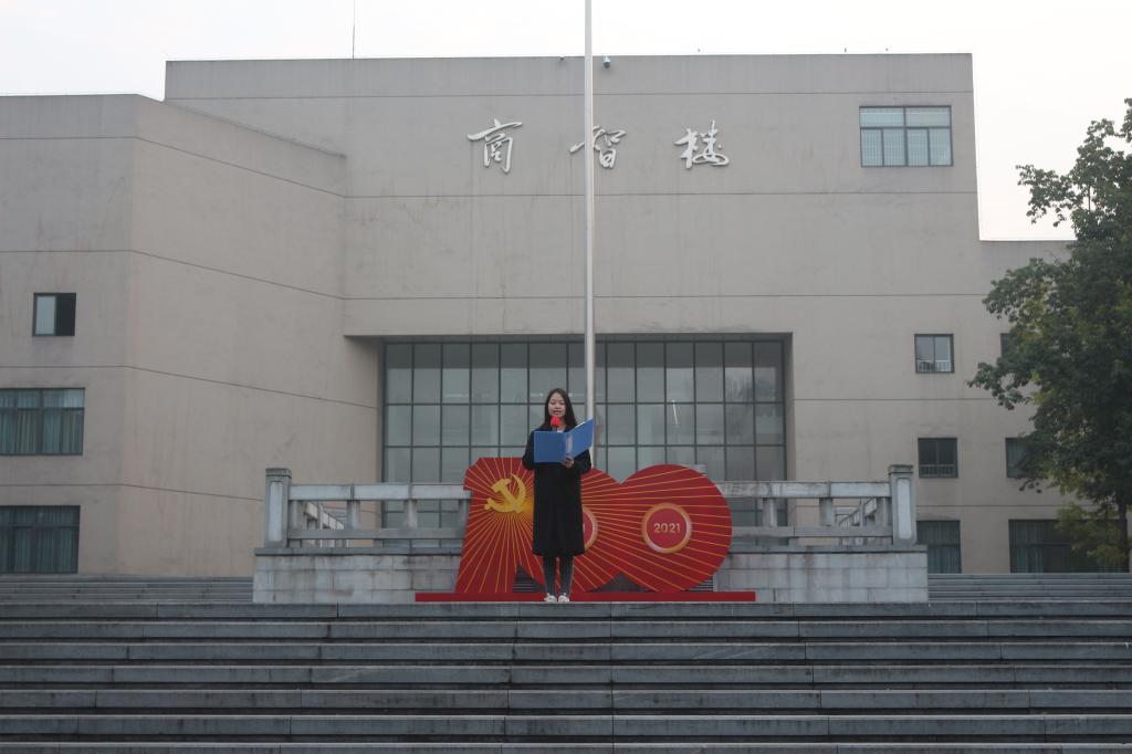 随后,学生代表2019级物流管理专业张雨涵、2020级电子商务专业李泓贤同学分别在五星红旗下发言,他们表示自己幸运地生在了红旗下,长在春风里作为新时代的中国青年要以实现中华民族伟大复兴为己任,增强做中国人的志气、骨气、底气,不负时代,不负韶华,拥有良好心态了解、合理安排好自己的时间,确立自己的目标,不负党和人民的殷切期望!