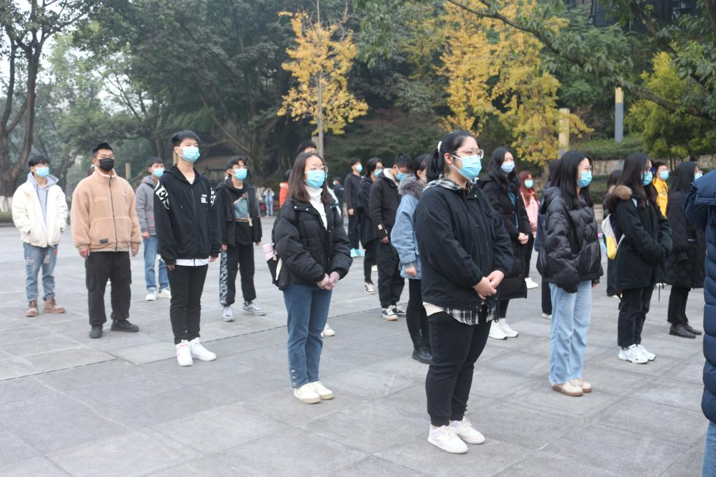 为进一步激发广大青年爱国热情,在全党、全国人民热烈庆祝建党百年之时,在十九届六中全会胜利闭幕之际,管理科学与工程学院多形式、多渠道加强青年师生的爱国主义教育。11月15日上午7:20,学院在南岸校区校前广场举行了庄严隆重的师生一起唱国歌、升国旗仪式。学院党委副书记陈春洁、学生工作办公室主任古纯玉、专职辅导员邓艺、邓诗语以及2019级、2020级各班学生线上、线下同步参加了活动。