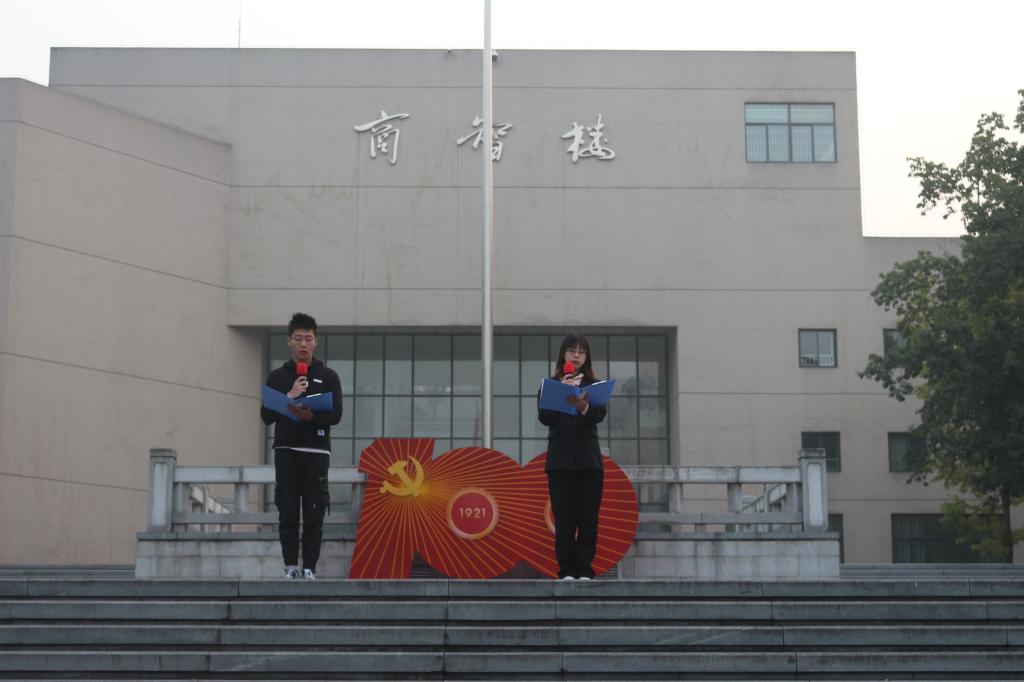 2020级学生代表张小强、彭钟毅深情朗诵了《我们永远跟党走》“我们永远跟党走,万众一心,同舟共济,携手共进,谱写最美华章!”铿锵有力的朗诵赢得了现场同学们的热烈掌声。