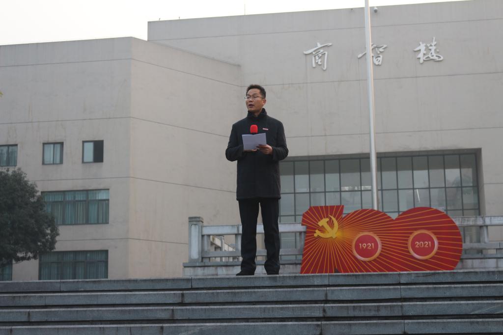 陈春洁进行了题为“庆建党百年,忆红色初心”的爱国主义教育,他强调了此时此刻组织此次师生一起唱国歌、升国旗仪式的三个重大意义:一是中国共产党今年成立一百周年,学习贯彻习近平总书记在庆祝中国共产党成立100周年大会上的重要讲话精神是目前和今后一个时期的一项重大政治任务;二是在这个高速发展的时代,作为青年学子,亦是祖国未来的希望,要坚定“四个自信”,清楚认识国家的制度优势,增强做中国人的志气、骨气、底气;三是管工学子作为“管科人”,理应以国为家,承担起民族振兴的历史重任,把爱国之情付诸实践。同时,代表学院党委对学院青年师生提出了殷切期望。一是坚定理想信念、锤炼高尚品格,将人生的每一步走踏实;二是练就过硬本领,勇于创新创造,不断巩固自身能力提升综合素质;三是以理想为帆,信仰作桨,用实际行动谱写开拓创新的新时代赞歌,努力成长为未来建设祖国的主力军!