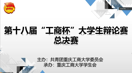 6月12日下午,由校团委主办、校学生会承办的第十八届“工商杯”辩论赛总决赛顺利举行。本次比赛通过腾讯会议直播,企业微信平台转播的方式进行,中南财经政法大学法学院副教授徐小奔、西南政法大学辩论队主教练景轶、世界华语辩论锦标赛联合主办人于强、365英国上市官网艺术学院院长殷俊、365英国上市官网MBA教育中心主任任毅担任本次比赛的评委。