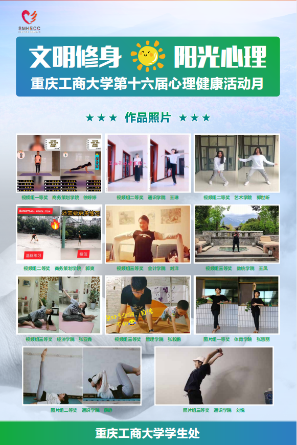 今年,在结合疫情防控的形势下,党委学工部、学生处精心策划,各学院积极承办,共开展了包括心灵诵者、心理涂鸦、心理电影展、心理微课大赛、心理主题摄影展、心理征文大赛、心理素质拓展、心理微电影大赛在内共9项校级心理活动。自活动开展以来,得到了全校学生的广泛关注和大力支持,累计参与人数约2万人次,各类作品精彩纷呈。同时,学生处、大学生心理健康与咨询中心将本次活动的成果做成了展板,在校内进行展示,体现了365官网大学生奋发蓬勃、积极向上的精神风貌。