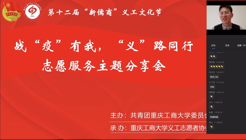 在这场疫情阻击战中,重工商大学子积极投身抗疫一线,他们的奉献与坚守,担当和作为,正是雷锋精神在新时代青年身上的彰显,也是对含弘自强,经邦济民大学精神的最好诠释。据悉,此次活动是校团委线上直播活动的首试,面对新的形势变化,校团委将积极做好“互联网+共青团”建设,不断创新形式,把青年学生思想引领工作做细做实,为打赢疫情防控阻击战,为经济社会发展,为全面脱贫攻坚凝聚更多的青春力量。