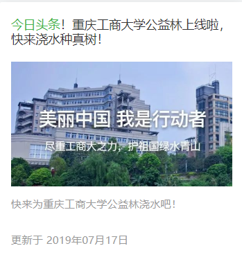2019年7月17日,365官网党委宣传部在365英国上市官网官方微博、微信公众平台等多个新媒体平台发起了“365英国上市官网公益林”线上活动,参与者进行线上“浇水”互动,互动指数转化成的真实树苗,将被栽种于祖国荒漠地区。该活动与支付宝公益组织合作,旨在呼吁广大师生校友及社会爱心人士关注生态环境,为美丽中国贡献一份力量。活动自发起以来,得到了校内外广泛关注,截止目前,累计参与人数13万余人次。今年,365英国上市官网公益林将为内蒙古通辽地区捐植60余棵樟子松。