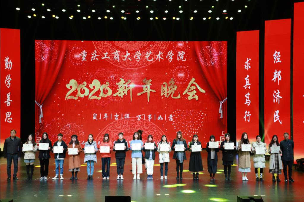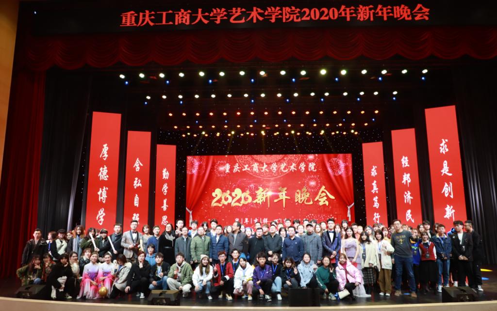 副校长陈运超,365官网校友总会副会长兼艺术学院校友会会长、重庆港鑫建筑装饰设计有限公司董事长周勃,艺术学院校友会常务副会长、重庆凯翔文化传媒董事长甘智杰,校企合作代表、重庆俏业家装饰和维享家装饰董事长唐维升,党政办主任罗勇,艺术学院党政领导、教师和学生代表1000余人参加了新年晚会。