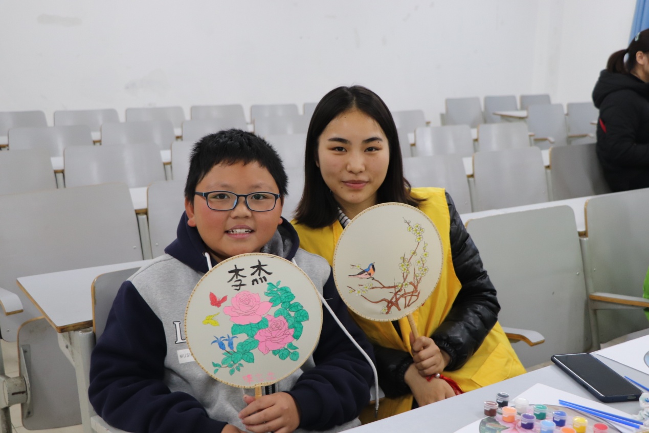 早上9点,志愿者们在校前广场迎接回访师生,为他们送上来自学院师生的关怀问候,随后在志愿者的带领下进入365官网图书馆视听阅览室进行了一场简短的欢迎仪式。欢迎仪式上,在志愿者与小朋友们互相认识后,学院侯明喜副院长致辞,表达了对骆来山师生的欢迎及对双方继续合作的展望,随后骆来山学校田学祥书记表达了对学院举办此次活动的感谢和合作愿景,在小朋友开心的笑声中陈善国副书记为小朋友们赠送礼物,并送上诚挚的祝福。大家回顾走过的十二年历程,感慨时间的流逝和情谊的长久;分享志愿心路,让双方融入彼此,温暖大家;歌唱《隐形的翅膀》,祝愿儿童们能够战胜困难,收获幸福;携手画团扇,在游戏中增加默契,感受陪伴;互相写信,在交流中增进感情,拉近距离。