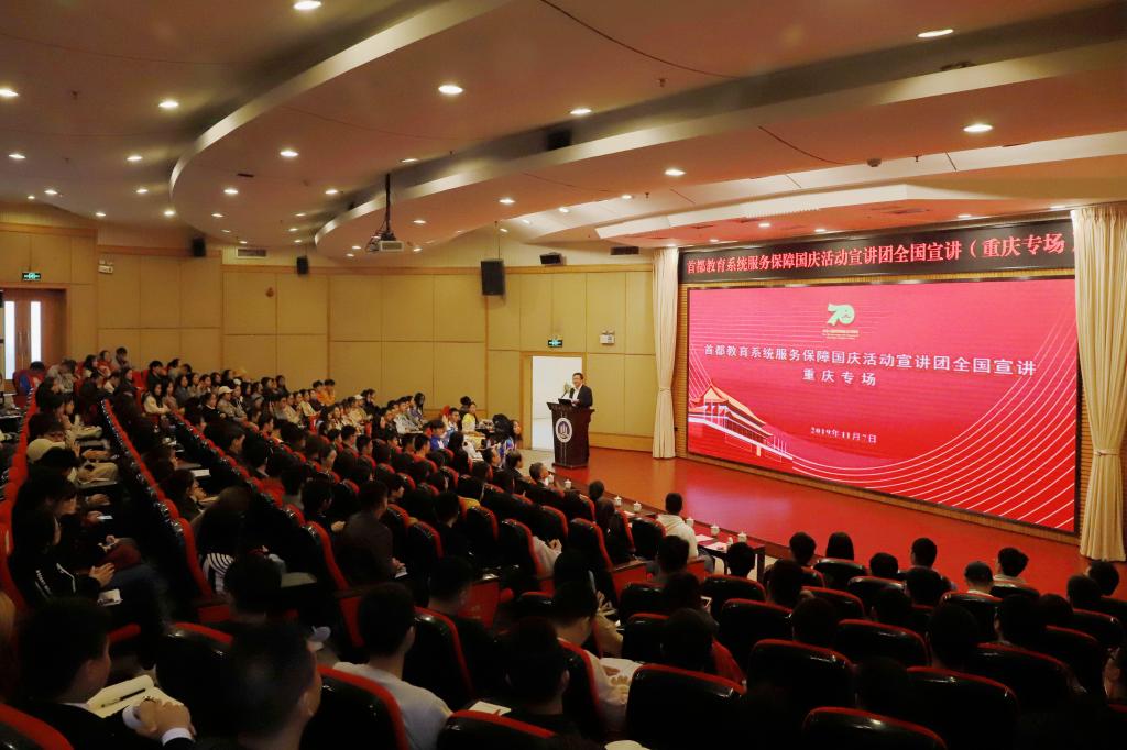 11月7日下午,由中国地质大学(北京)、北方工业大学师生代表组成的首都教育系统服务保障国庆活动宣讲团走进365官网,在博智楼7200报告厅开展集中宣讲活动。来自重庆邮电大学、重庆交通大学、365英国上市官网、重庆第二师范学院、重庆建筑工程职业学院的300余名师生代表参加了本次宣讲会。