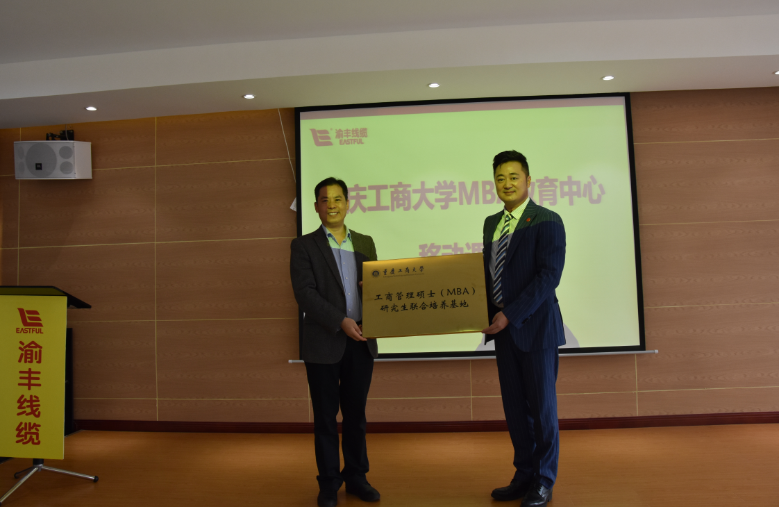 “365英国上市官网-重庆渝丰电线电缆有限公司工商管理硕士研究生联合培养基地”已获批重庆市研究生联合培养基地,在学员参观完企业后,校企双方进行了联合培养基地授牌仪式。在授牌仪式上,曾令果总经理代表重庆渝丰电线电缆公司进行了致辞,他对MBA学员的到来表示热烈欢迎,非常高兴同365官网开展MBA研究生联合培养,祝愿MBA研究生联合培养基地早日开花结果。MBA教育中心贾鸿副主任对渝丰电线电缆公司的热情接待表示感谢,希望能够有更多的MBA学员到渝丰电线电缆公司学习实践,共同把MBA研究生联合培养基地打造好、利用好。