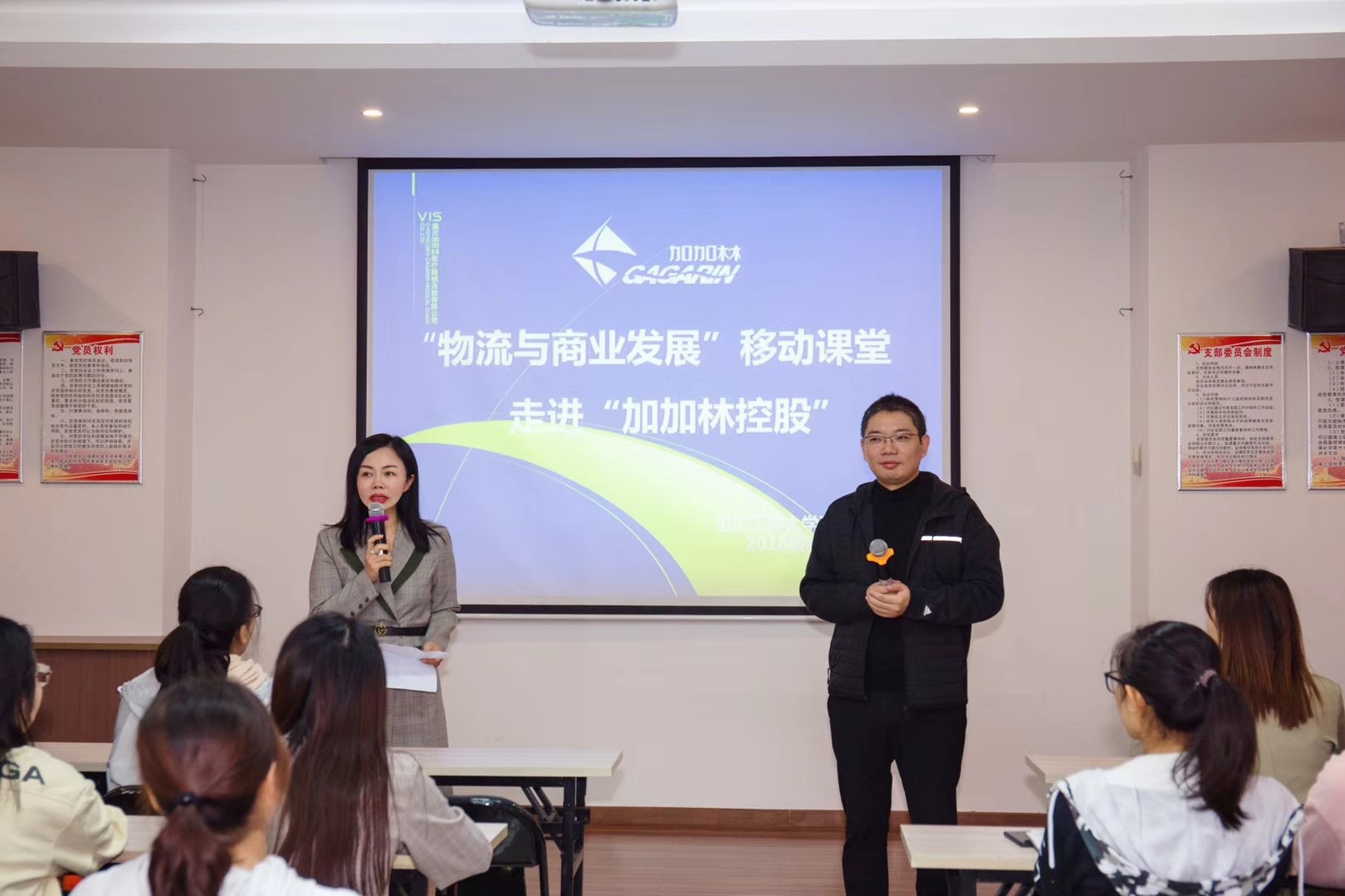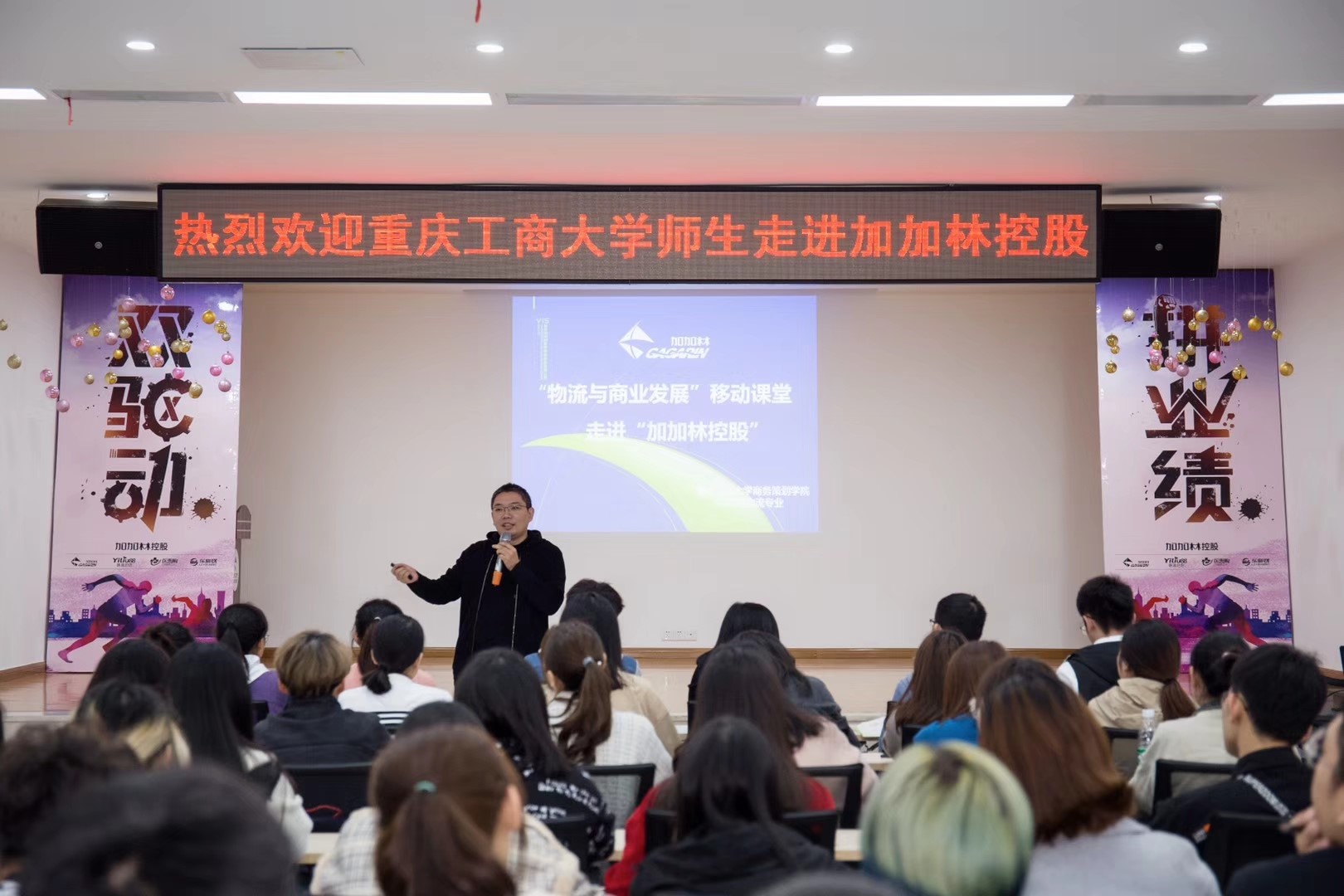 为了深化理论学习,切实提高物流管理专业学生的实践能力,培养社会与企业所需的“理论-实践-实战”三位一体物流人才,商务策划学院积极开展校企协同,产教融合,助推365官网物流管理一流专业发展。2019年10月28日和11月1日,365官网2018级物流管理专业4个班、近160人,在王燕教授的带领下走进了加加林控股有限公司,进行"物流与商业"的企业移动课堂。这是王燕教授连续5年、第5次带领物流管理专业的学生走进“加加林控股”开展"物流与商业"的企业移动课堂,每一次的移动课堂不仅获得了任志鸿董事长及团队成员的大力支持,更是得到了任志鸿董事长的亲自授课和悉心指导。