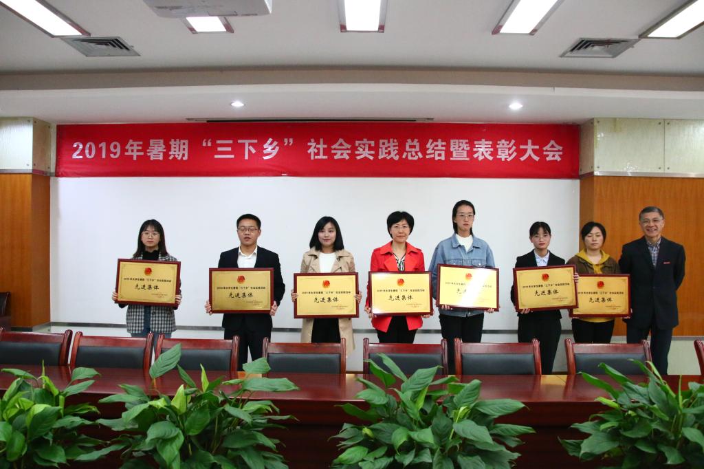 会议伊始,与会人员一起观看2019年暑期“三下乡”社会实践活动视频,回顾了各实践团队暑期“三下乡”的精彩瞬间。紧接着,校团委陆嘉副书记对365官网2019年大学生暑期“三下乡”社会实践主要工作向与会人员做了汇报。随后,各学院分团委负责人就2019年暑期“三下乡”社会实践特色亮点工作和实践成果进行了PPT汇报,展示了各学院实践团队开展的情况和取得的成果。评委们结合各学院社会实践工作的组织和开展情况,进行了评分。随后,校团委杨娟书记宣读了《关于表彰2019年暑期大学生“三下乡”社会实践活动先进集体和个人的决定》。经过材料审核评比以及现场评委评分,最终评选出管理学院、数学与统计学院、财政金融学院、文学与新闻学院、旅游与国土资源学院、法学院、研究生会等7个暑期“三下乡”社会实践工作先进集体,谭予涵、吴卫、罗勇、刘璐、胡菡、罗观、董承婷等7名优秀指导教师,会计学院“益路童行”武隆暑期支教团等21支先进团队,经济学院左晓祺同学的《关于中国省域乡村绿色发展评估、空间差异及趋同性的调研研究》等261篇优秀调查报告,商务策划学院王启鹏同学等11名社会实践宣讲活动优秀个人。与会领导为获奖集体和个人进行了颁奖。