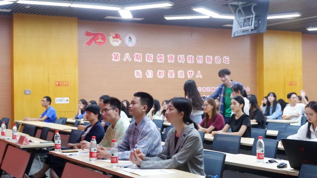 9月27日下午,由校团委主办的庆祝中华人民共和国成立70周年系列活动——第八期“新儒商”科技创新论坛在南岸校区图书馆第六会议室举行。论坛以“我们都是追梦人”为主题,创新创业代表体育学院殷勇同学、学生干部代表旅游与国土资源学院贺春森同学和学习标兵代表会计学院李佳玥同学在论坛上作主题发言。校团委陆嘉副书记与150余名来自各学院的学生代表参与活动。
