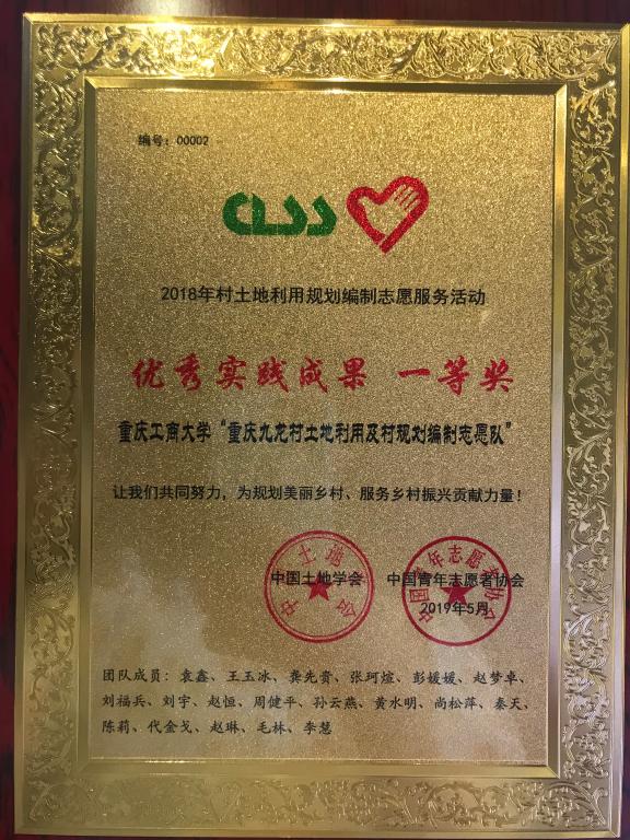 据悉,共青团中央、自然资源部联合组织开展了2018年村土地利用规划志愿服务全国大学生暑期社会实践专项行动,为落实好党中央关于建立“多规合一”空间规划体系的部署和要求,校团委全力支持,旅游与国土资源学院高度重视,在分团委的组织协调下,紧密结合学院专业特色,打破专业壁垒,分别选派土地资源管理、人文地理与城乡规划专业的优秀学生和专业教师进行整合,形成多学科、跨专业融合的实践团队。旅游与国土资源学院“重庆九龙村土地利用及村规划编制志愿队”由学院分团委书记胡菡、土地资源管理专业教师王兆林、人文地理与城乡规划专业教师郑凌予共同指导。实践团队不惧酷暑,在连日40℃高温下开展了村域面上调查和村民入户调查,获得了规划编制的基础资料。结合调研成果,从村域产业发展、生态保护、耕地和永久基本农田保护、村庄建设、基础设施和公共设施建设、环境整治等方面进行土地利用规划与村规划,历时两个月,顺利完成了九龙村土地利用与村规划编制工作。志愿服务活动成果得到了九龙坡区陶家镇政府和九龙村村民的高度赞赏,并得到重庆青年报、中新网、华龙网等主流媒体的大量报道和转载,取得了良好的社会反响,并形成了校地联合、校村联合的合作模式。