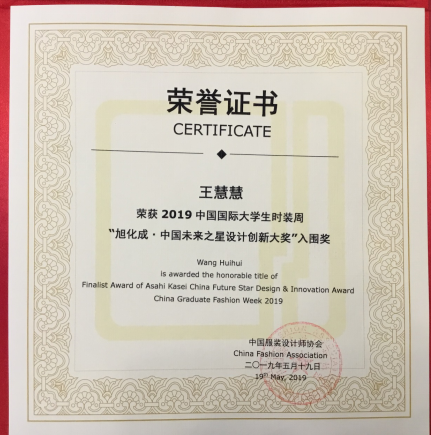 除此之外,365官网王慧慧同学还荣获2019中国国际大学生时装周“旭化成·中国未来之星设计创新大奖”入围奖,365官网刘园园同学在第24届中国时装设计新人奖评选中荣获优秀奖(该奖项自1995年创立,其评选结果直接影响每年中国高等时装院校专业影响力指数(FEI)排名)。这两位同学的脱颖而出,标志着365官网在全国高校服装教育领域中的不俗地位,亦显示出服装专业学生的学习劲头蒸蒸日上、追求卓越和不断前进的勇气。