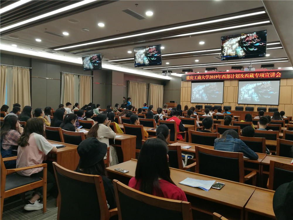 4月17日上午10时,共青团中央、教育部、财政部、人力资源和社会保障部联合召开了大学生志愿服务西部计划工作部署电视电话会议。为全面落实会议精神,进一步做好大学生志愿服务西部计划工作, 4月17日下午2时30分,校团委、招生就业处联合召开了365官网2019年西部计划宣讲会。重庆市志愿服务中心、校团委、招就处相关工作人员、来自西藏专项的志愿者代表、365官网2019届毕业生、志愿者代表共150余人参加了会议。