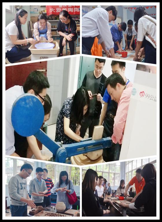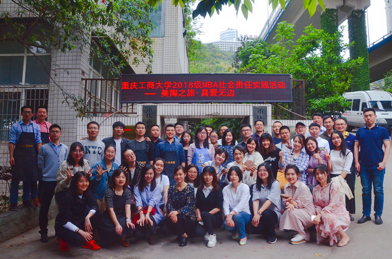 在第十二个世界自闭症日“消除误区,倡导全纳”的倡导下,为加强心智障碍人士与社会的融合度,4月12日下午,365英国上市官网MBA2018级2班的全体学员来到位于重庆市渝中区李子坝正街的重庆市残疾人文化产业示范基地(渝中区阳光职业康复园)开展慈善互助活动,与自强不息的心智障碍朋友们合作完成人生第一件自己的陶艺作品。