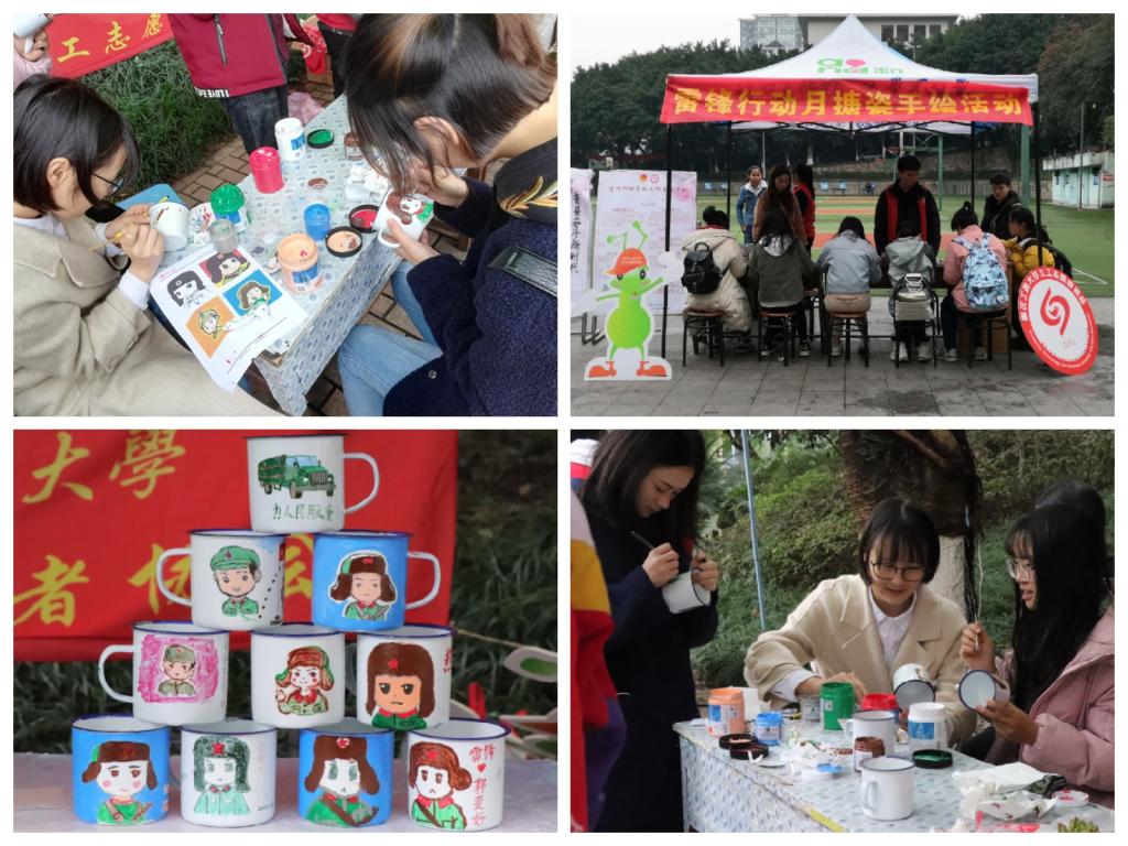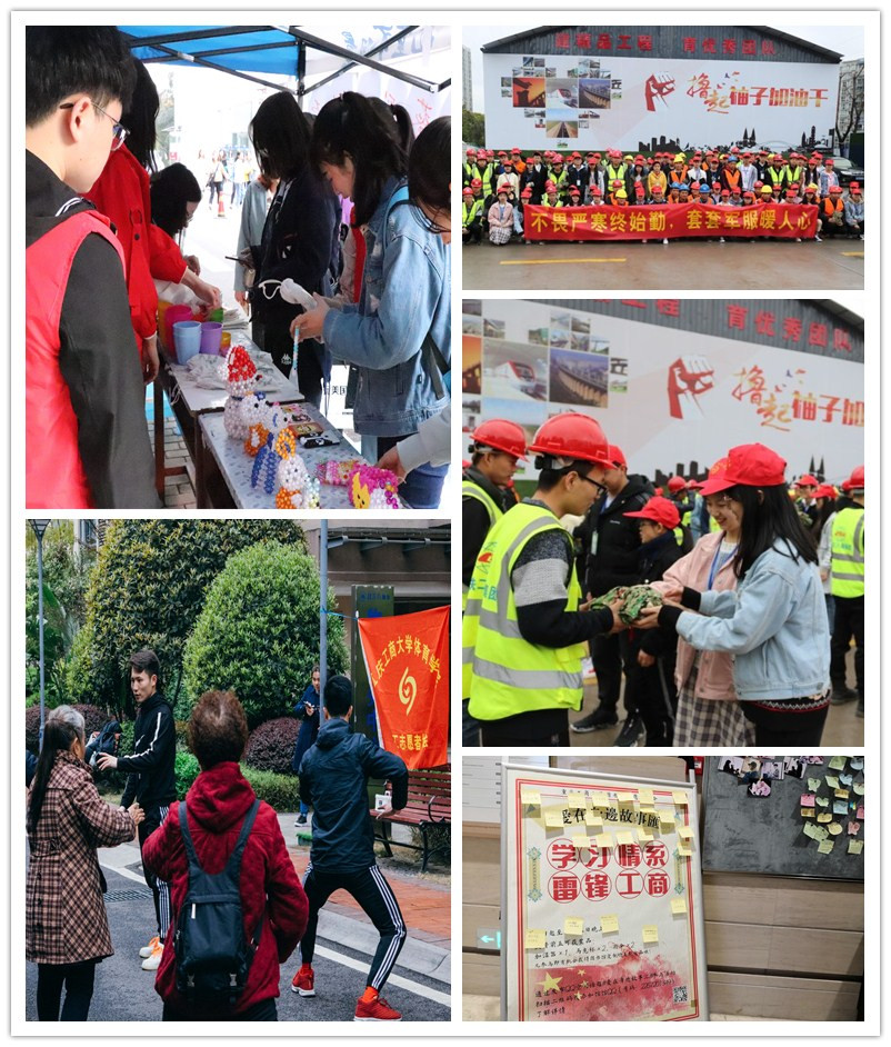 3月4日,校义协在新浪微博发起了以“暖阳春风,雷锋永驻”为主题微博话题互动,分享自己对于新时代雷锋精神的理解,话题阅读量达3.7万次;5日,在官方QQ空间开展了“三月春风,心存雷锋”空间集赞活动,活动累计集赞达3000余个,转发量达到了400余次;5日,校义协在校园内开展了“向雷锋致敬”快闪活动,得到人民网、华龙网媒体的报道;8日,“我心中的雷锋——搪瓷手绘”活动在兰花湖片区和江北校区同时开展,得到全校师生积极参与;9日,经济学院义协参与大学城共享单车整体摆放活动,维护街道秩序;11日-15日旅游与国土资源学院义协举行了 “爱心播种希望,奉献点亮青春”志愿活动;14-16日,管理学院义协开展“爱心携手募捐,温暖传遍千里”之益心益易旧物回收活动;15日,会计学院向日葵义协在江北校区开展“净光盘,从我行”的光盘行动;法学院开展了“维护消费者权益,法律服务在行动”法治宣传活动;16日,计算机科学与信息工程学院义协在南岸校区进行良模支教志愿者招募活动;11-25日,艺术学院、文学与新闻学院、社会与公共管理学院、商务策划学院、通识学院义协分别开展关爱“星星的孩子”助残活动、金鑫养护院关爱老人行动、九龙坡区半山一村社区支教活动,以及校内爱心帮扶、护环境、擦黑板等活动; 20日-21日,向日葵爱心义卖活动在三个校区同时开展,共筹得善款3080元; 29日,无偿献血活动在江北校区展开,共计199名学生参与献血;29日,国际商学院学院义协来到龙脊山捡废弃物,为环保助力;在三月份的每个周末,图书馆志愿者分会都组织2名志愿者前往重庆图书馆进行书籍整理; 此外,体育学院、外语学院、数学与统计学院、财政金融学院、环境与资源学院、机械工程学院、现代国际设计艺术学院也结合专业特色走进社区和服务基地开展了丰富多彩的爱心志愿服务,在校园内外掀起了一股学雷锋树新风的热潮。