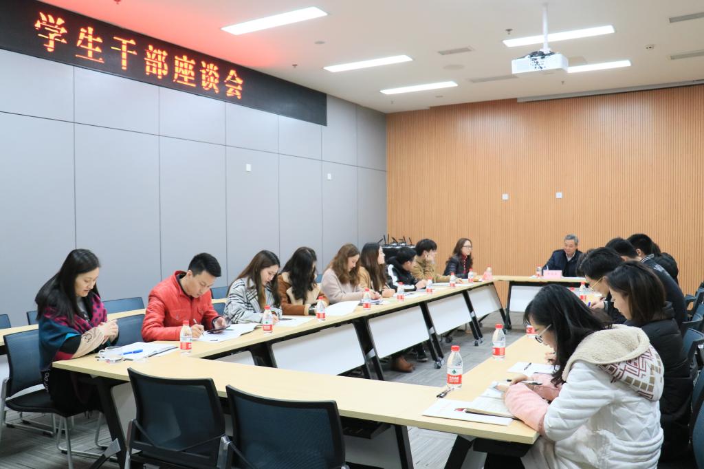 会上,学生干部针对过去一学期组织开展的学生活动,负责的工作和新一年的展望逐一进行了汇报。李国军副校长仔细聆听,与同学们展开亲切交谈,就学习生活、学生工作、学生权益、个人成长等方面的问题展开了调研和讨论。最后,他在总结发言中首先对学生干部在过去一学期的辛苦付出和取得的成绩表示肯定和祝贺,同时,提出了三点希望:一是学生干部应加强学习,坚定理想信念,培养好的品格;二是学生干部应锤炼作风,坚决去“四化”,积极联系和服务同学,培养新风尚,实现新作为;三是学生干部要提升自身素质和能力,勤学善思,求真笃行,做奋斗者。