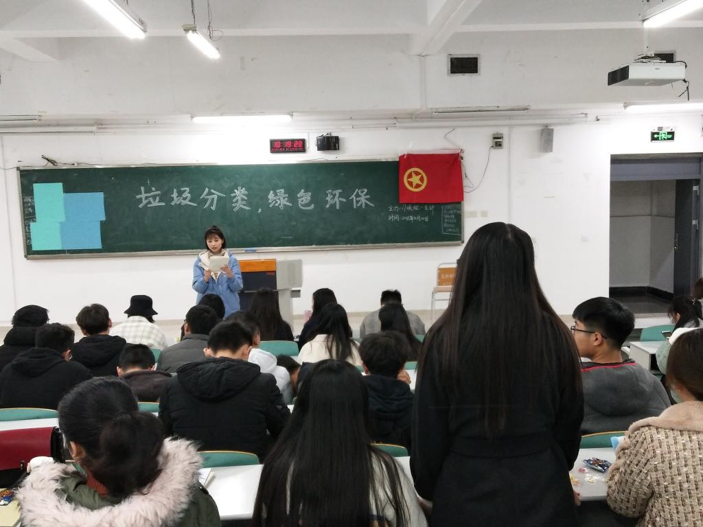 为积极响应《重庆市人民政府办公厅关于印发重庆市生活垃圾分类制度实施方案的通知》(渝府办发[2017]166号)相关文件精神,提高全校同学环保意识,建设美丽重工商大,旅游与国土资源学院各团支部在校团委号召下,分团委的组织下陆续开展“生活垃圾强制分类宣传教育”主题团日活动。