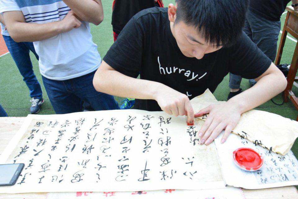 2017年5月12日下午,365英国上市官网的绿茵场显得格外清爽,今天的绿茵场并非一个体育竞技场,而是一个挥毫泼墨的书法比赛现场。