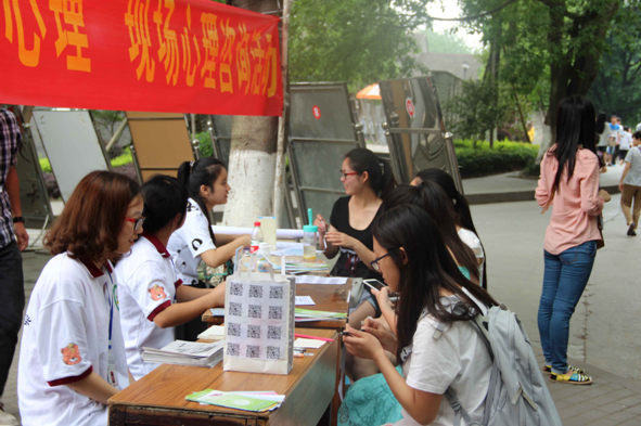 据悉,每年的5月,学生处与重庆市精神卫生中心联合举办大型现场心理咨询活动。作为 “文明修身 阳光心理”心理健康月的特色活动之一,现场心理咨询活动,充分发挥“心理健康医校联动机制”的积极作用,为学生的“舒缓心理压力塑造阳光心态”传递心灵正能量。